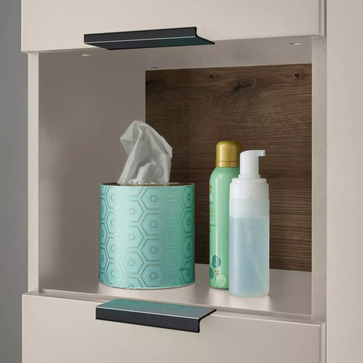 Zwei geräumige Fächer bieten ausreichend Platz für all Ihre Badutensilien, während ein zusätzliches Fach die Organisation erleichtert und für Ordnung sorgt. Die moderne Gestaltung des Schranks wird durch die klare Linienführung und das dezente Design unterstützt, was ihn zu einem zeitlosen Begleiter in Ihrem Bad macht.