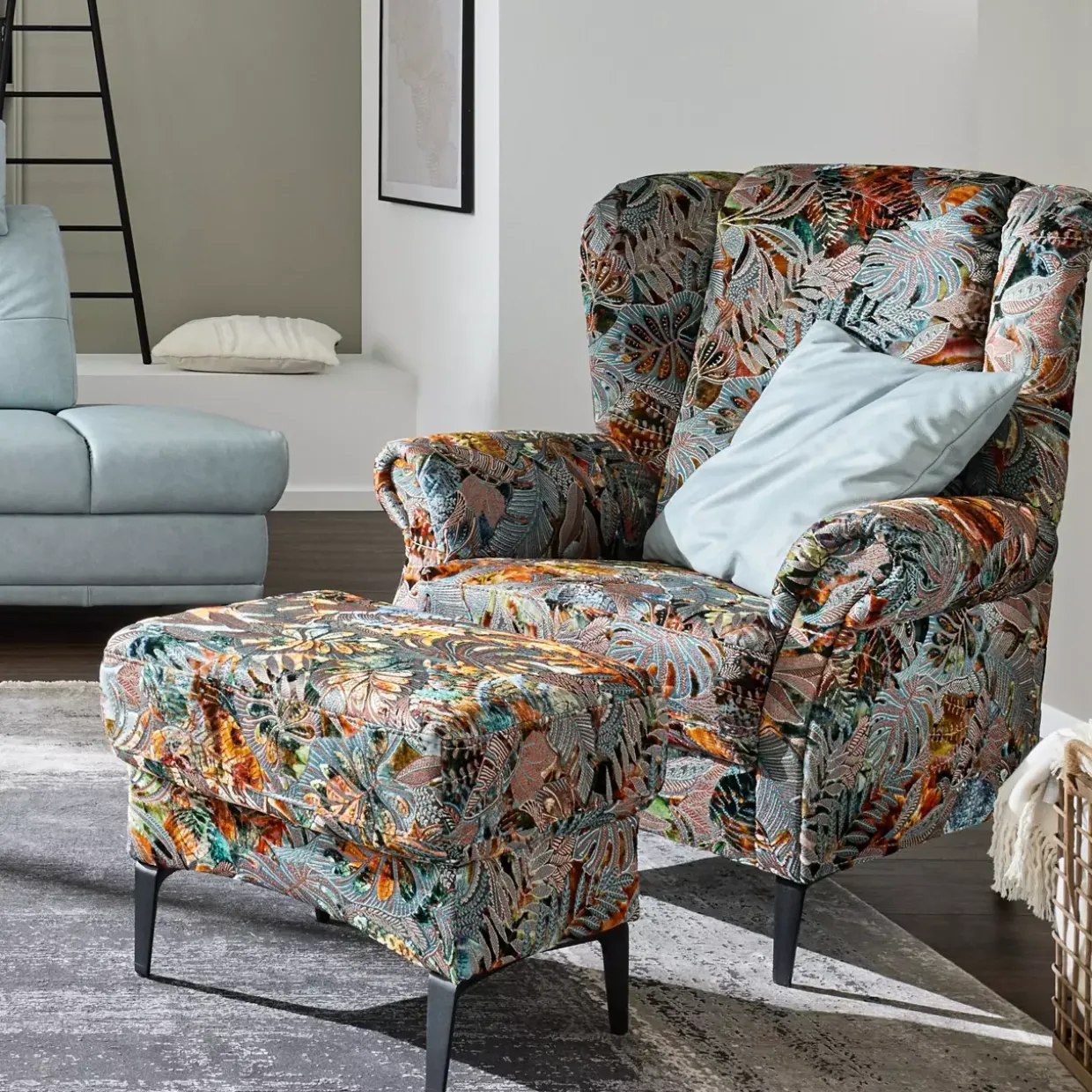 Ein Hauch von Eleganz: Der Duett Hocker präsentiert sich in einem floralen Muster, das jedem Raum eine besondere Note verleiht. Mit der Kombination aus hochwertigem Stoff und stabilem Metall vereint er Funktionalität und Stil auf harmonische Weise. Die Farbvarianten in smaragd und black matt bieten eine Auswahl, die sich in verschiedene Interieurs nahtlos einfügt.