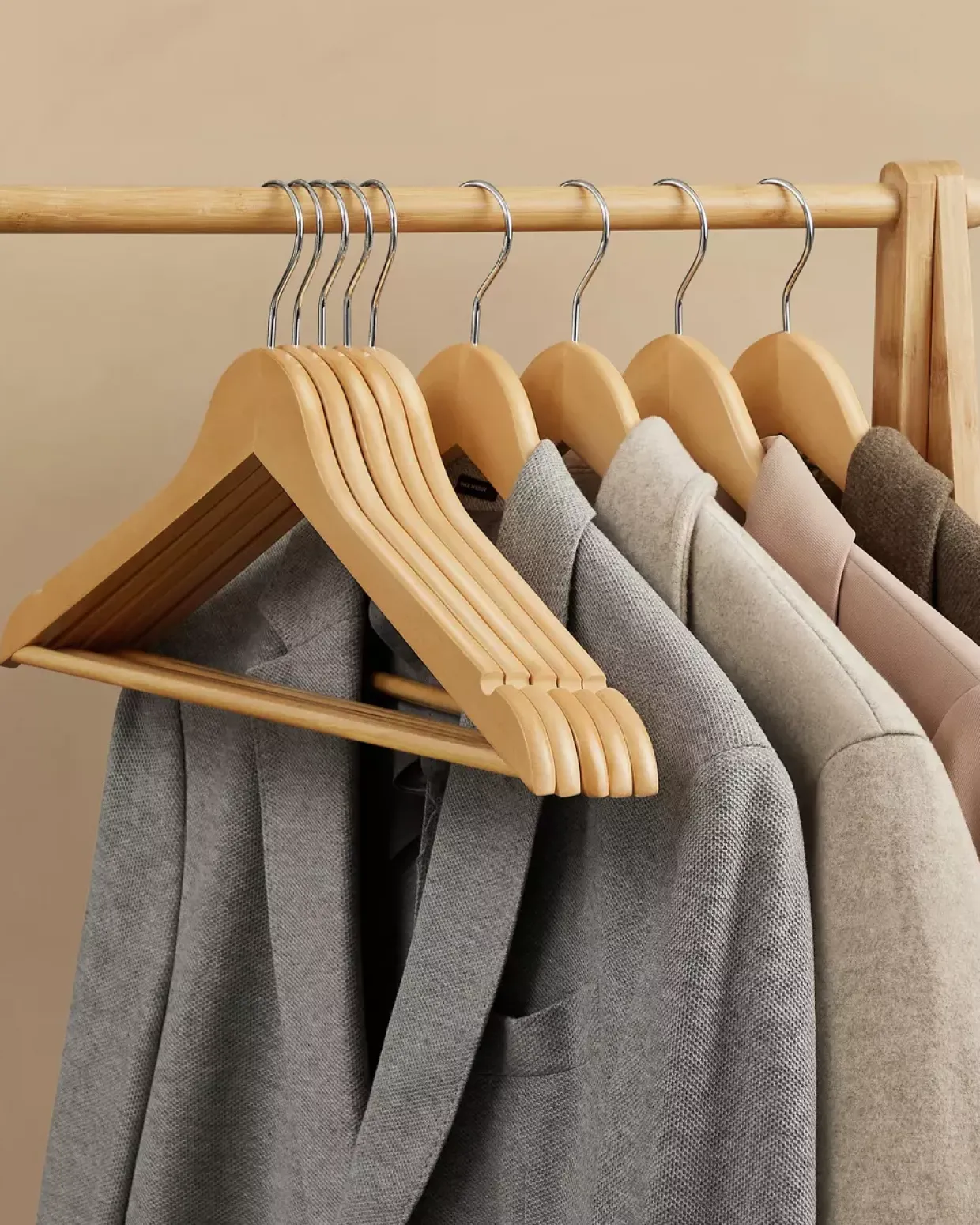 Kleiderbügel aus Holz sind bekannt für ihre Vielseitigkeit. Sie eignen sich sowohl für Hemden als auch für Jacken und Mäntel. Die natürliche Haptik des Holzes vermittelt ein Gefühl von Qualität und Beständigkeit. Zudem verhindert die glatte Oberfläche ungewollte Abdrücke auf der Kleidung.