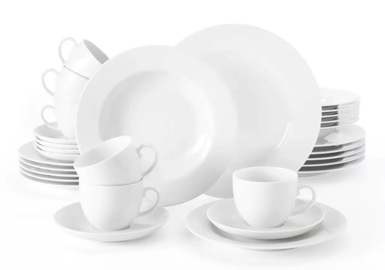 Erstklassige Qualität trifft auf modernes Design. Dieses Kaffeeservice aus Porzellan vereint zeitlose Eleganz mit hoher Funktionalität. Die runde Form und die strahlend weiße Farbe fügen sich nahtlos in jedes zeitgenössische Ambiente ein, während die widerstandsfähige Keramik Ihnen im Alltag treue Dienste leistet.