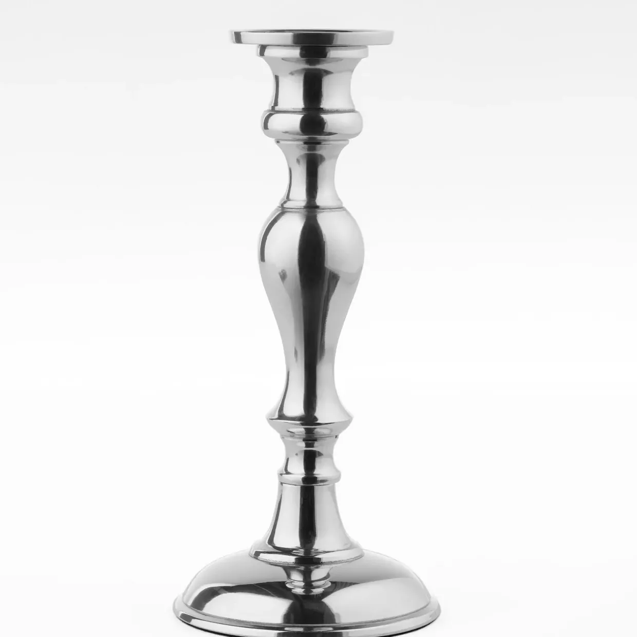 Aluminium, bekannt für seine Leichtigkeit und Beständigkeit, macht dieses Accessoire zu einem verlässlichen Begleiter in Ihrem Zuhause. Die kühle, silberne Farbgebung harmoniert mühelos mit verschiedenen Einrichtungsstilen, von klassisch bis modern. So fügt sich der Kerzenhalter nahtlos in Ihr Ambiente ein und setzt gleichzeitig einen dezenten Akzent.