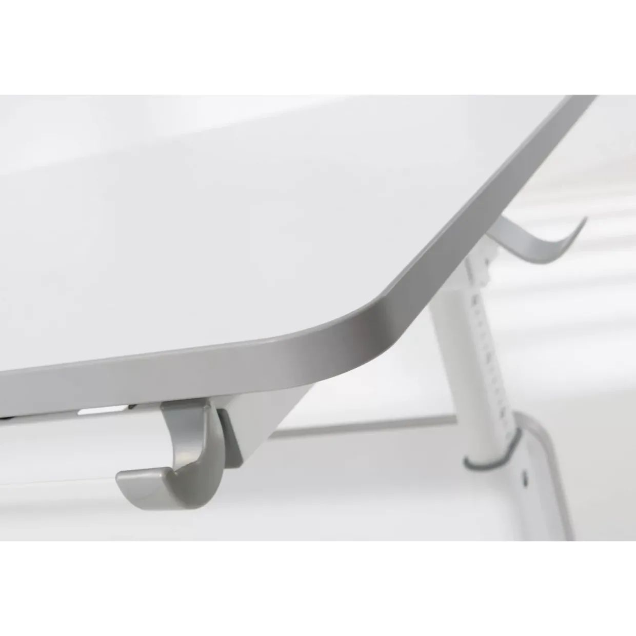 Flexibilität wird großgeschrieben, denn die Hauptplatte lässt sich bis zu 19° neigen, unterstützt durch 3 Raster-Scheren. Dies ermöglicht eine ergonomische Arbeitsweise, besonders hilfreich bei kreativen Tätigkeiten oder beim Zeichnen. Praktisch gestaltet, kommt der Schreibtisch mit einem integrierten 60 cm Lineal, das präzises Arbeiten erleichtert, sowie einer Ablagemulde für Schreibutensilien. Ein weiterer nützlicher Zusatz ist der Taschenhaken, der für Ordnung und Übersichtlichkeit sorgt.
