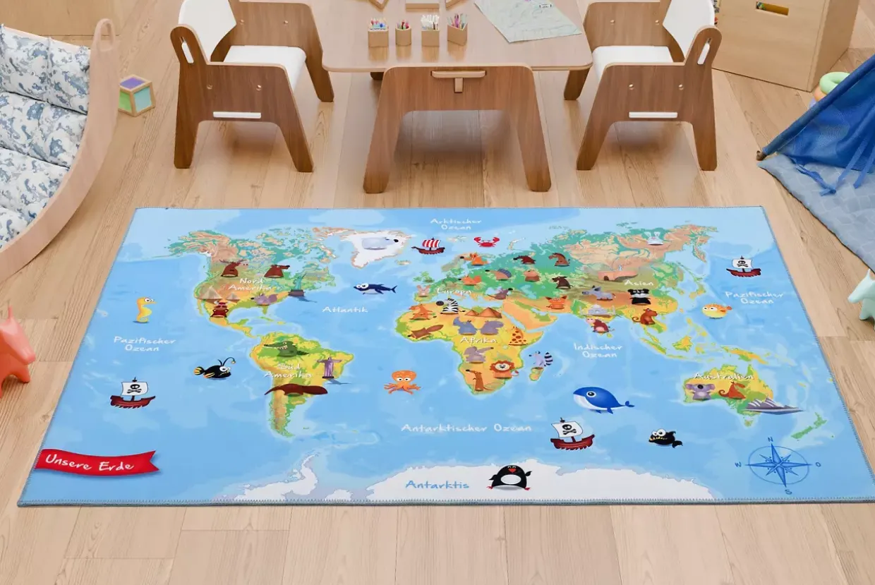 Ganzjährig einsetzbar, wird dieser Teppich zu einem beständigen Begleiter im Kinderzimmer. Die robuste Textilart sorgt dafür, dass er den alltäglichen Abenteuern der Kleinen standhält. Ein ideales Accessoire für junge Entdecker, das nicht nur Spaß und Bildung vereint, sondern auch Eltern durch seine praktischen Eigenschaften überzeugt. Ein Stück, das sowohl optisch als auch funktional begeistert.