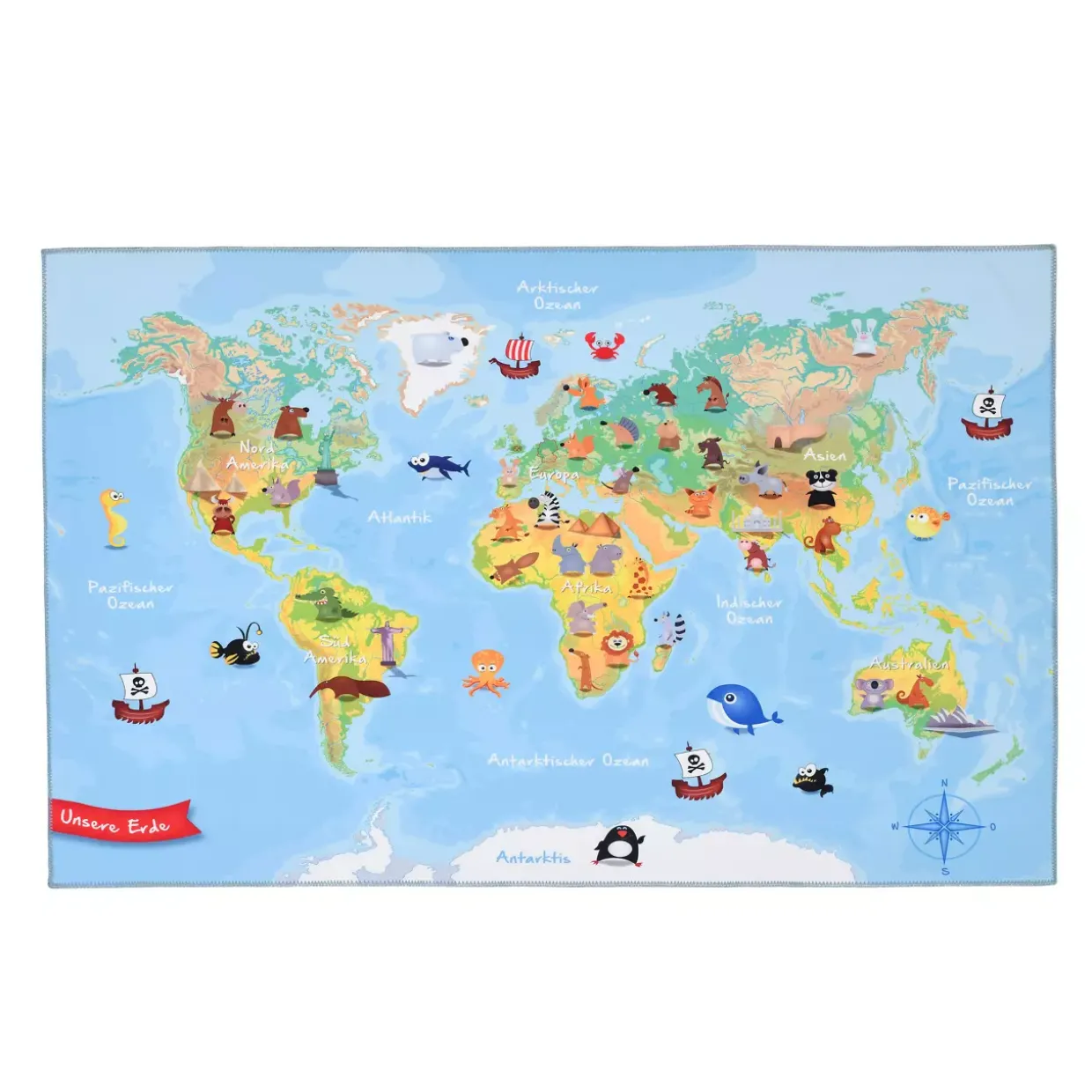 Die detailreiche Weltkarte als Motiv fördert die Neugier und das geografische Verständnis der Kinder. Ob Kontinente, Meere oder Länder – alles ist auf diesem Teppich spielerisch erkundbar. Das Zertifikat Textiles Vertrauen – Ökotex Standard 127 garantiert, dass der Teppich frei von Schadstoffen ist und somit eine sichere Umgebung für Kinder bietet.