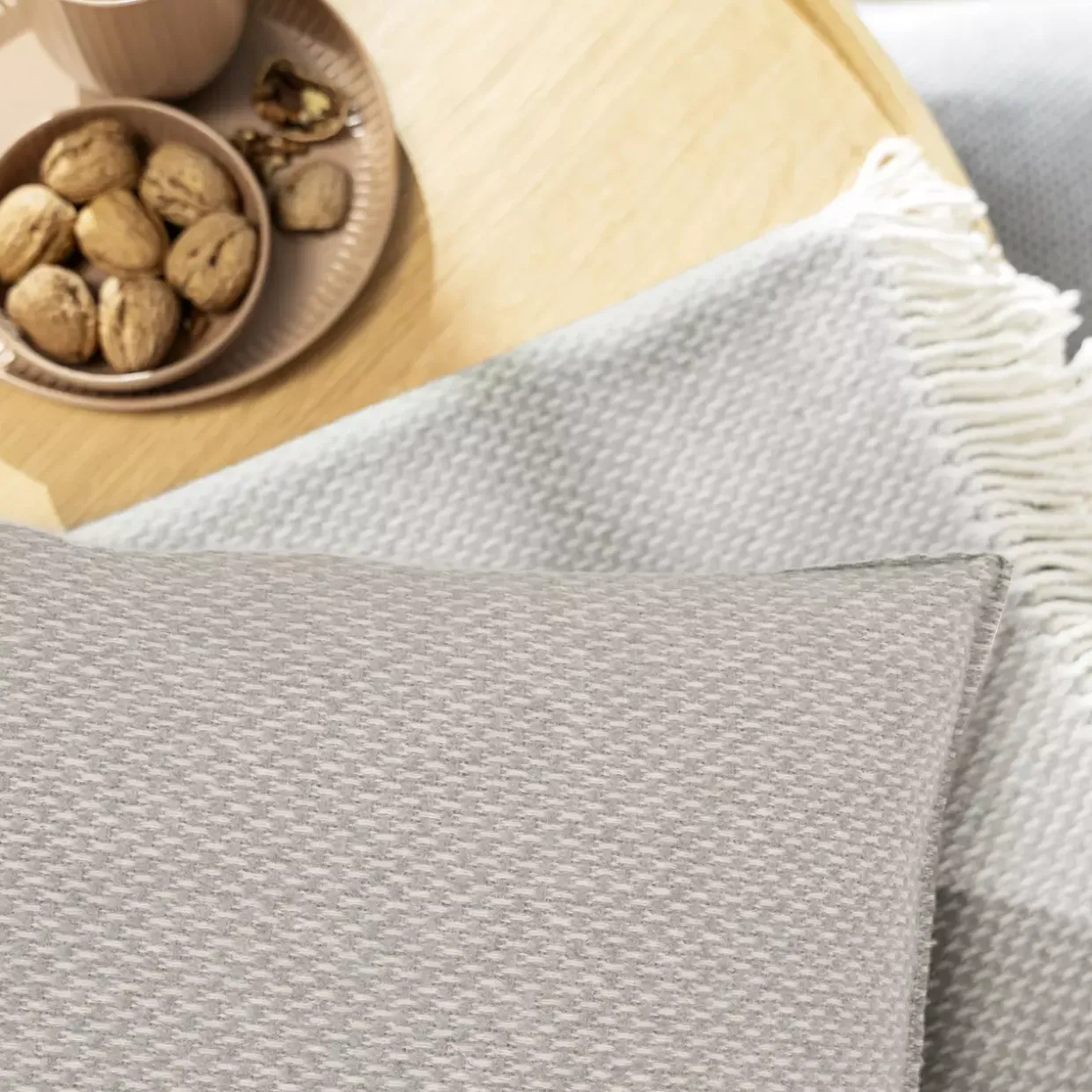 Quadratische Formen bieten eine zeitlose Eleganz, die sich harmonisch in jede Wohnumgebung einfügen lässt. Die Kissenhülle JANIS besticht durch ihren charmanten Cottage-Stil und die schlichte graue Farbgebung, die Ruhe und Gelassenheit ausstrahlt. Gefertigt aus hochwertigem Jaquard-Mischgewebe, vereint sie Langlebigkeit mit einem angenehmen Griff. Die ganzjährige Saisonfähigkeit dieses Produkts ermöglicht es Ihnen, es zu jeder Jahreszeit stilvoll zu nutzen.