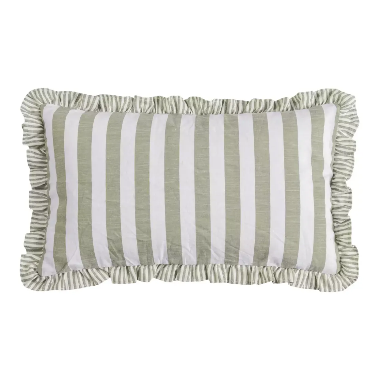 Ein Hauch von ländlicher Gemütlichkeit zieht mit der stilvollen Kissenhülle im Cottage-Stil in Ihr Zuhause ein. Die beruhigende grüne Farbgebung harmoniert perfekt mit dem Streifenmuster, das zeitlos und charmant wirkt. Gefertigt aus hochwertigem Mischgewebe, verspricht die Kissenhülle nicht nur eine angenehme Haptik, sondern auch Langlebigkeit und Formbeständigkeit. Dank des Reißverschlusses lässt sich die Hülle mühelos abnehmen und bei Bedarf in der Maschine bis 30°C schonend waschen.