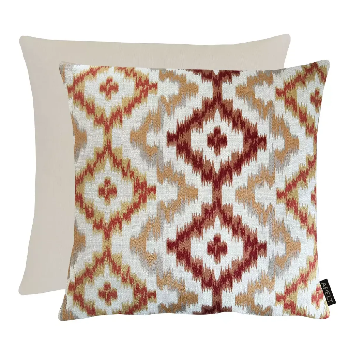 Quadratisch in der Form und modern im Stil – die Milan Wendekissenhülle bringt zeitlose Eleganz in Ihr Zuhause. Die harmonische Farbkombination aus natürlichen Tönen, Orange und Rot verleiht jedem Raum eine warme und einladende Atmosphäre. Dank ihrer graphischen Musterung wird sie zum stilvollen Blickfang auf jedem Sofa oder Bett.Ganzjährig einsetzbar, überzeugt diese Kissenhülle durch ihre Vielseitigkeit. Das verwendete Mischgewebe sorgt für eine angenehme Haptik und Langlebigkeit. Die Wendekissenhülle trägt das Ökotex-Standard 100 Zertifikat, was bedeutet, dass sie auf Schadstoffe geprüft und als unbedenklich eingestuft wurde.Mit einem praktischen Reißverschluss ausgestattet, lässt sich die Kissenhülle einfach abnehmen und pflegen. Bei maximal 30°C kann sie in der Maschine schonend gewaschen werden. Für die Pflege ist es ratsam, sie mäßig heiß zu bügeln und auf den Trockner zu verzichten. Die Reinigung mit Perchlorethylen ist möglich, jedoch sollte auf das Bleichen verzichtet werden.Verleihen Sie Ihrem Wohnraum mit dieser eleganten Kissenhülle eine besondere Note. Ob auf dem Sofa, dem Sessel oder im Schlafzimmer – sie ist ein vielseitiges Accessoire, das durch seine hochwertige Verarbeitung und ansprechende Optik besticht.