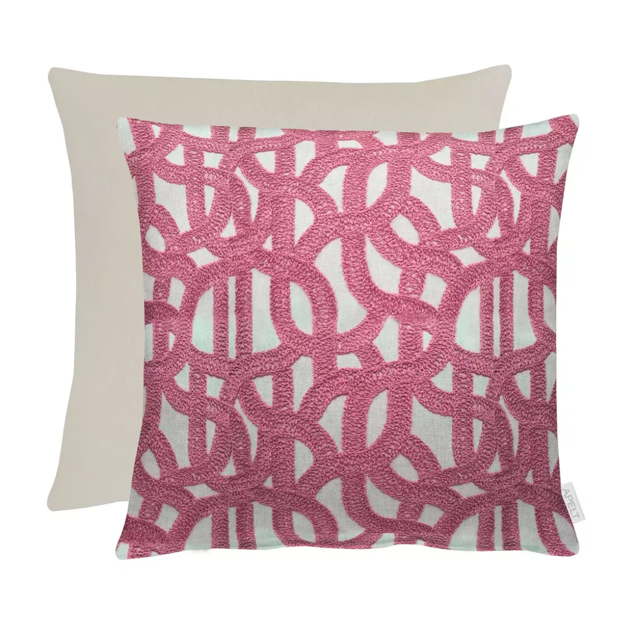 Ein kunstvoll besticktes Design verleiht dieser modernen Kissenhülle eine einzigartige Ästhetik, die jeden Raum aufwertet. In einem sanften Pink gehalten, bietet sie das ganze Jahr über einen frischen Akzent für Ihre Wohnräume. Die quadratische Form passt sich harmonisch verschiedenen Einrichtungsstilen an, während die Wendefunktion zusätzliche Flexibilität in der Dekoration ermöglicht.