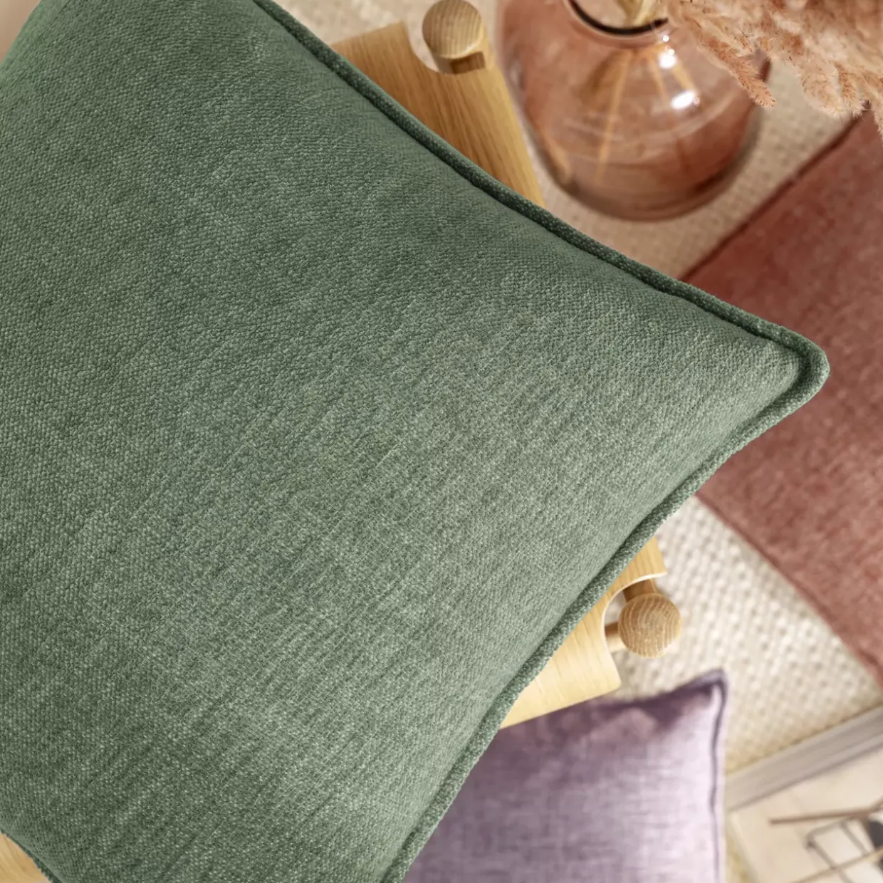 Salbei, eine Farbe, die Ruhe ausstrahlt und jedem Raum eine moderne Note verleiht. Die quadratische Form der SMOOTHY Kissenhülle passt perfekt in jedes Wohnambiente und verbindet zeitgemäßen Stil mit Funktionalität. Ob im Wohnzimmer, Schlafzimmer oder auf der Terrasse – diese Kissenhülle ist ein ganzjähriger Begleiter für Ihr Zuhause.
