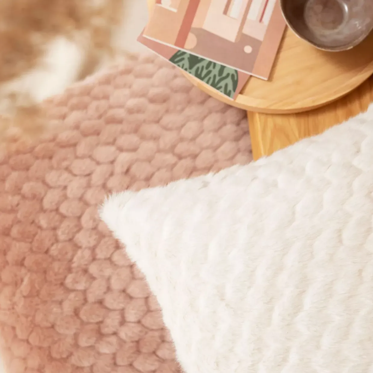 Quadratische Eleganz trifft auf modernen Stil in der Kissenhülle MINK. Der sanfte nude Farbton fügt sich harmonisch in jede Einrichtung ein und verleiht Ihrem Raum eine dezente Note. Dank des hochwertigen Webpelzes aus Synthetikfaser fühlt sich die Oberfläche angenehm weich an und bietet ein luxuriöses Gefühl.