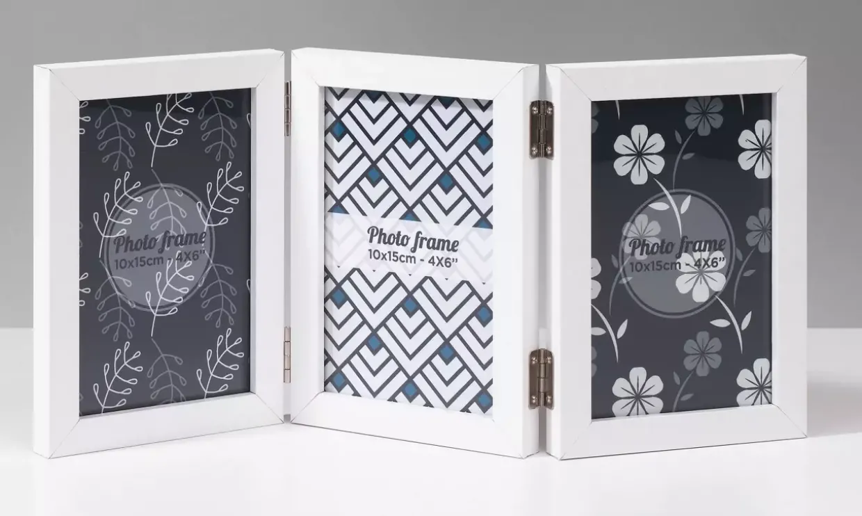 Weiße Eleganz in modernem Stil zieht in Ihr Zuhause ein. Der Klappbilderrahmen aus hochwertigem Holz vereint zeitgemäßes Design mit klassischer Handwerkskunst. Die schlichte Farbgebung ermöglicht eine nahtlose Integration in jedes Wohnambiente, während das Material für Langlebigkeit und Stabilität sorgt.