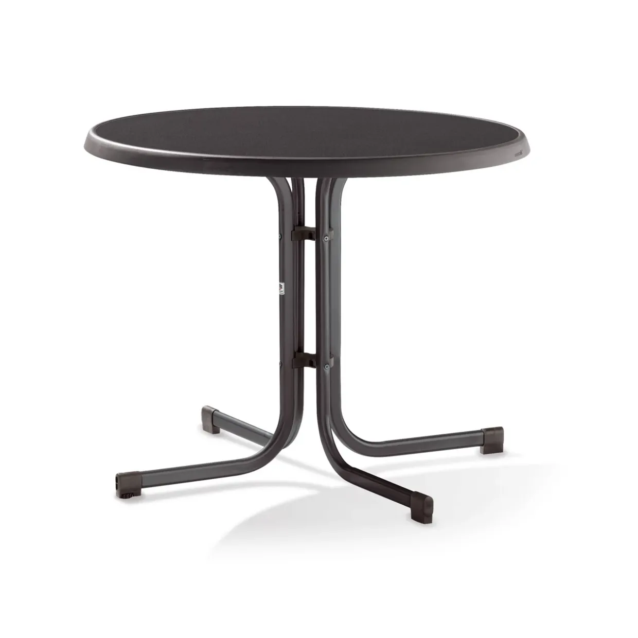 Eisengrau und Anthrazit vereinen sich in einem stilvollen Design, das den modernen Klapptisch Boulevard zu einem eleganten Begleiter für Ihren Außenbereich macht. Mit einem Durchmesser von 86 Zentimetern bietet dieser Tisch ausreichend Platz für gesellige Runden im Sommer.