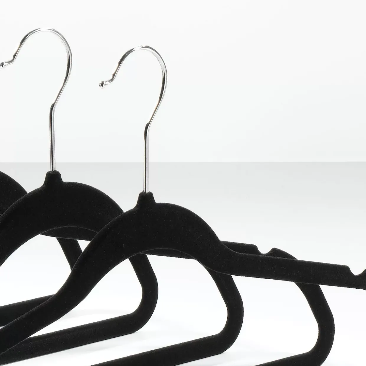 Die beflockte Oberfläche ist ein weiteres bemerkenswertes Highlight, das dafür sorgt, dass Ihre Kleidung sicher an ihrem Platz bleibt. Kein Abrutschen, keine Falten – einfach nur perfekt aufbewahrte Kleidung. Während der Kunststoff Leichtigkeit bringt, sorgt das Metall für die notwendige Robustheit, um auch schwerere Kleidungsstücke zu tragen.