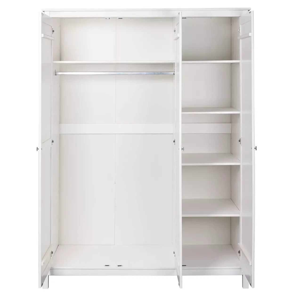 Der Chilly Home Kleiderschrank überzeugt mit seiner hochwertigen UV-Lackierung, die nicht nur für eine ansprechende Optik, sondern auch für Langlebigkeit sorgt. Aus massiv weiß lackiertem Kiefernholz gefertigt, fügt sich dieser Schrank nahtlos in ein konventionelles Wohnambiente ein. Die Kombination aus Holz und Metall verleiht dem Möbelstück eine robuste Stabilität, während das 4-Fußgestell für sicheren Stand sorgt.