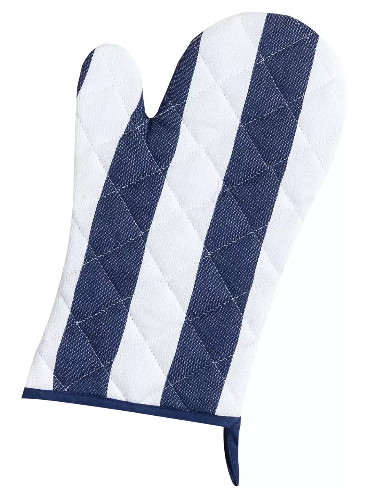 Die Kombination aus Blockstreifen-Muster und der beruhigenden blauen Farbe macht diesen Handschuh zu einem stilvollen Begleiter in jeder modernen Küche. Funktion trifft auf Design, und der Kochhandschuh wird somit zu einem unverzichtbaren Accessoire für jeden passionierten Hobbykoch.