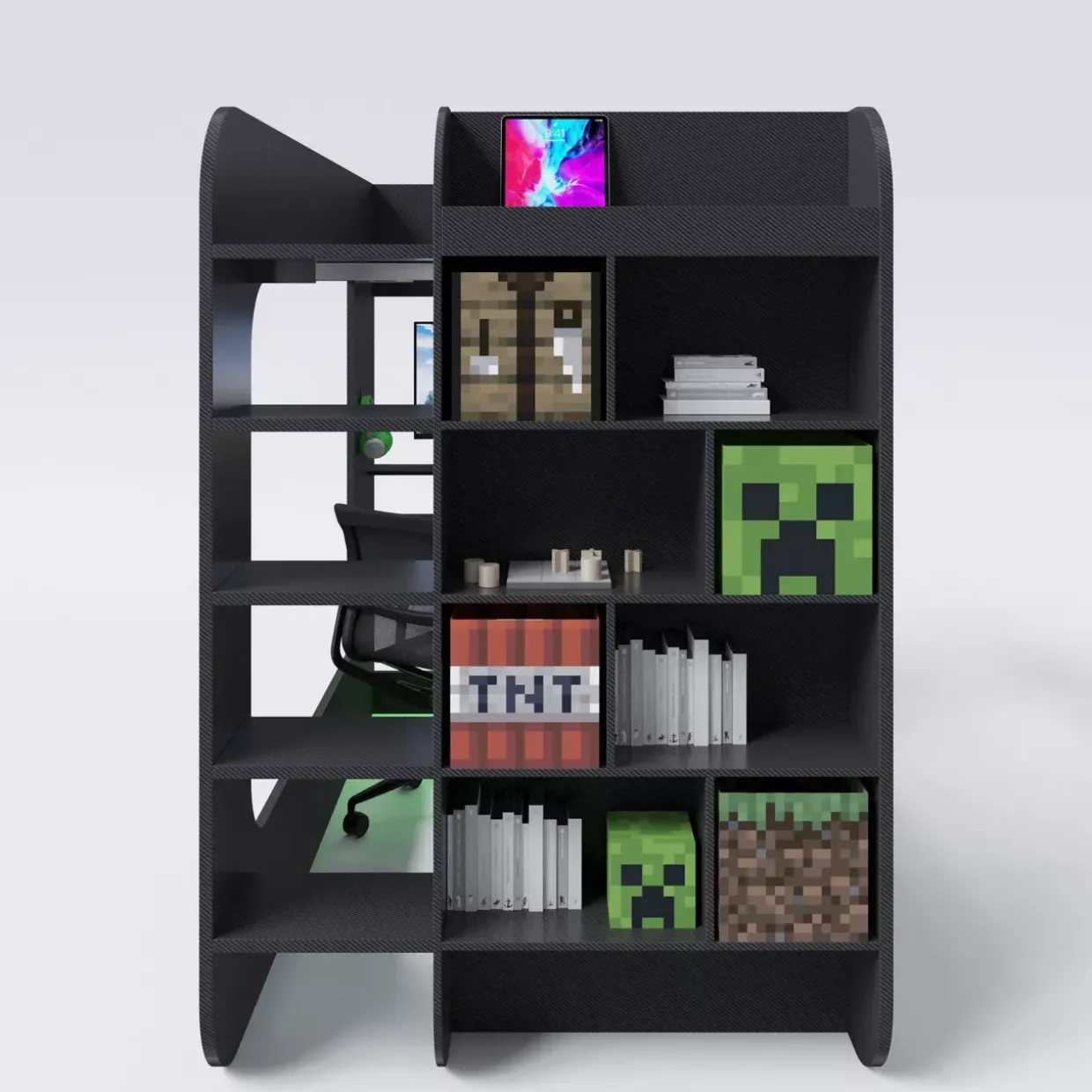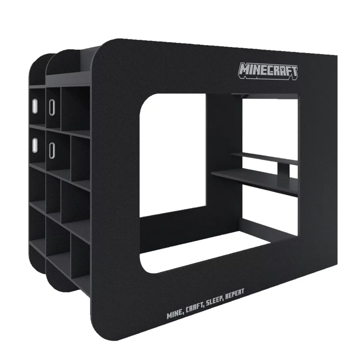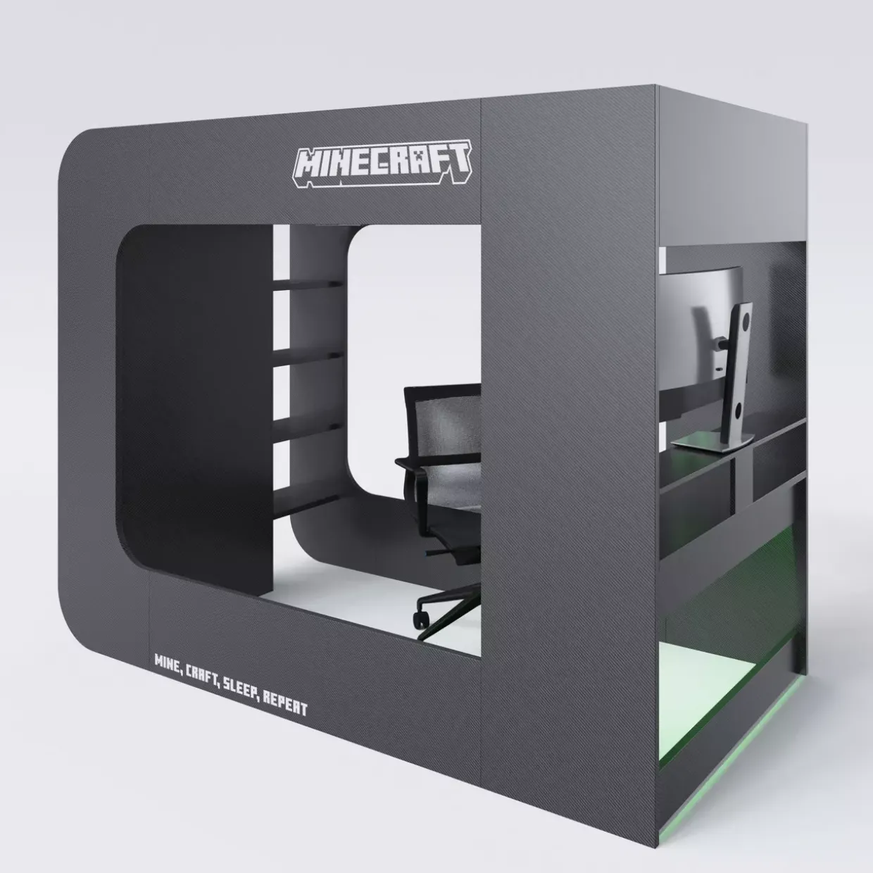 bestehend aus: 1x Lattenrost / 1x Beleuchtung / 1x integrierte Leiter / 1x Regal / 1x Bett / 1x Schreibtisch