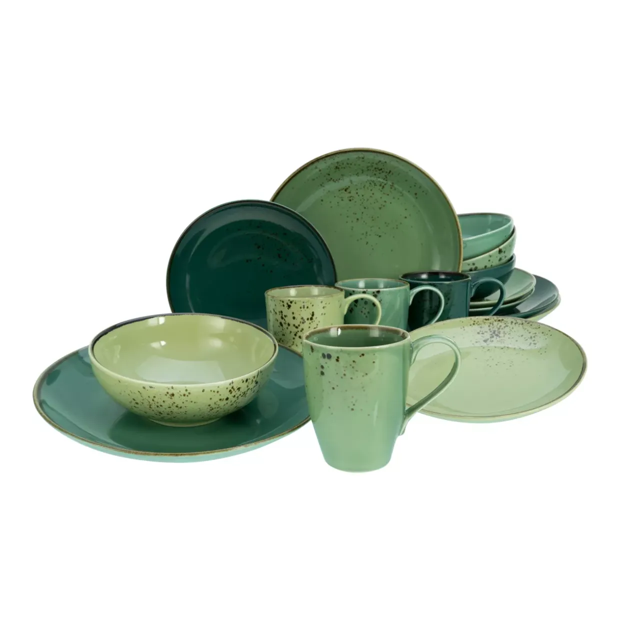 Das hochwertige Kombiservice der Serie „Nature Collection Green Life“ von CreaTable ist dank wunderschönem Design eine Bereicherung für Ihr Zuhause. Die Coupeform aus hochwertigem Steinzeug ist besonders modern. Die Naturglasuren sind von dekorativen Sprenkeln durchzogen.