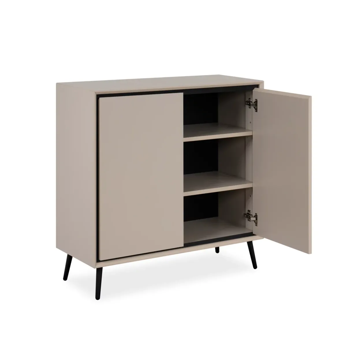 Mit einem modernen Stil und der ansprechenden Farbkombination aus Sand und Schwarz fügt sich diese Kommode nahtlos in zeitgemäß gestaltete Wohnräume ein. Die Arona-Kommode beeindruckt durch ihre funktionale Falttür, die nicht nur Platz spart, sondern auch einen eleganten Zugang zum Innenraum ermöglicht. Gefertigt aus hochwertigem Holzwerkstoff, verspricht sie Langlebigkeit und Stabilität.