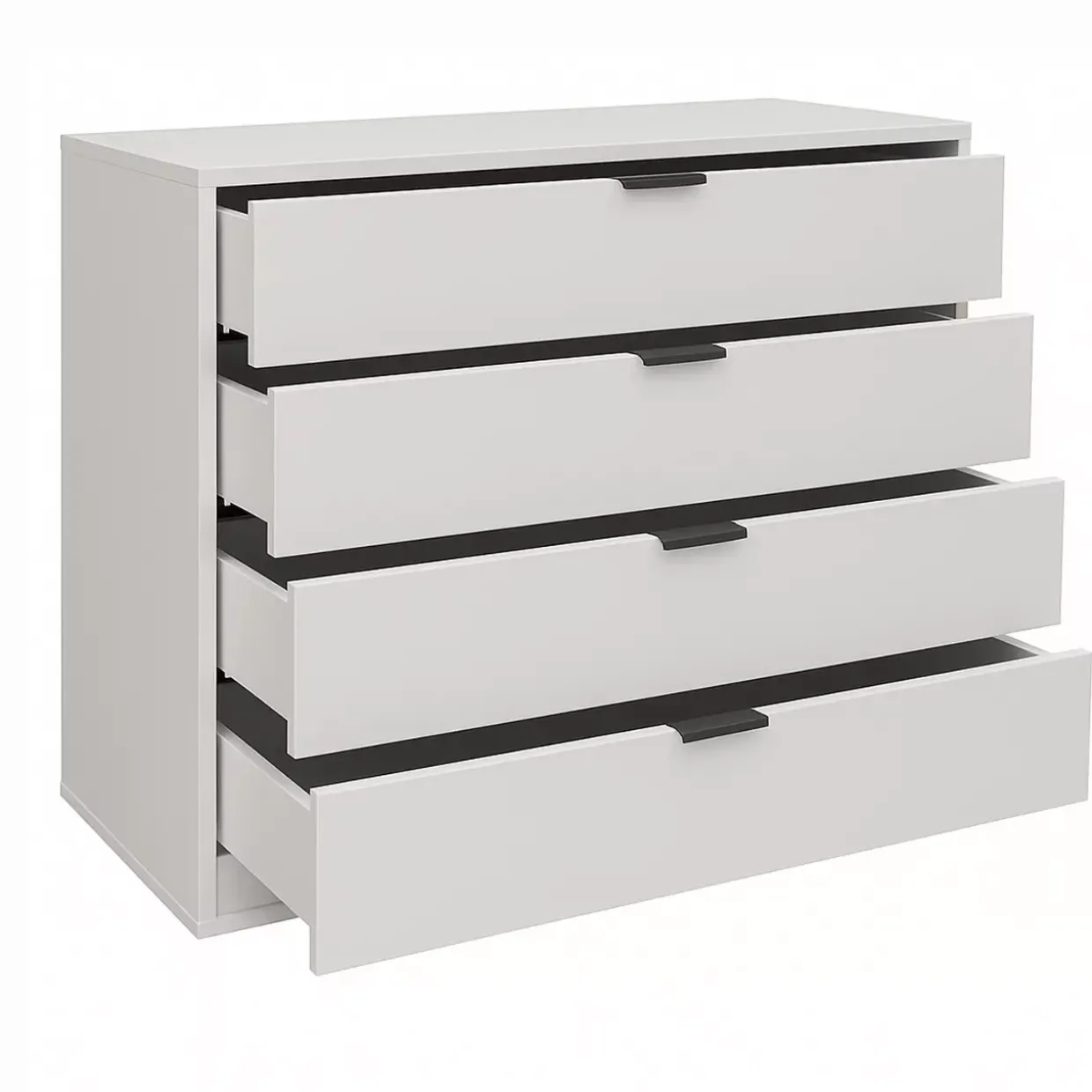 Mit ihren vier Schubladen, die auf hochwertigen Unterflurauszügen gleiten, bietet sie reichlich Stauraum für Ihre persönlichen Gegenstände. Der integrierte Selbsteinzug und das Soft-Close-System sorgen für ein müheloses und leises Schließen der Schubladen, was den Nutzungskomfort erheblich steigert.