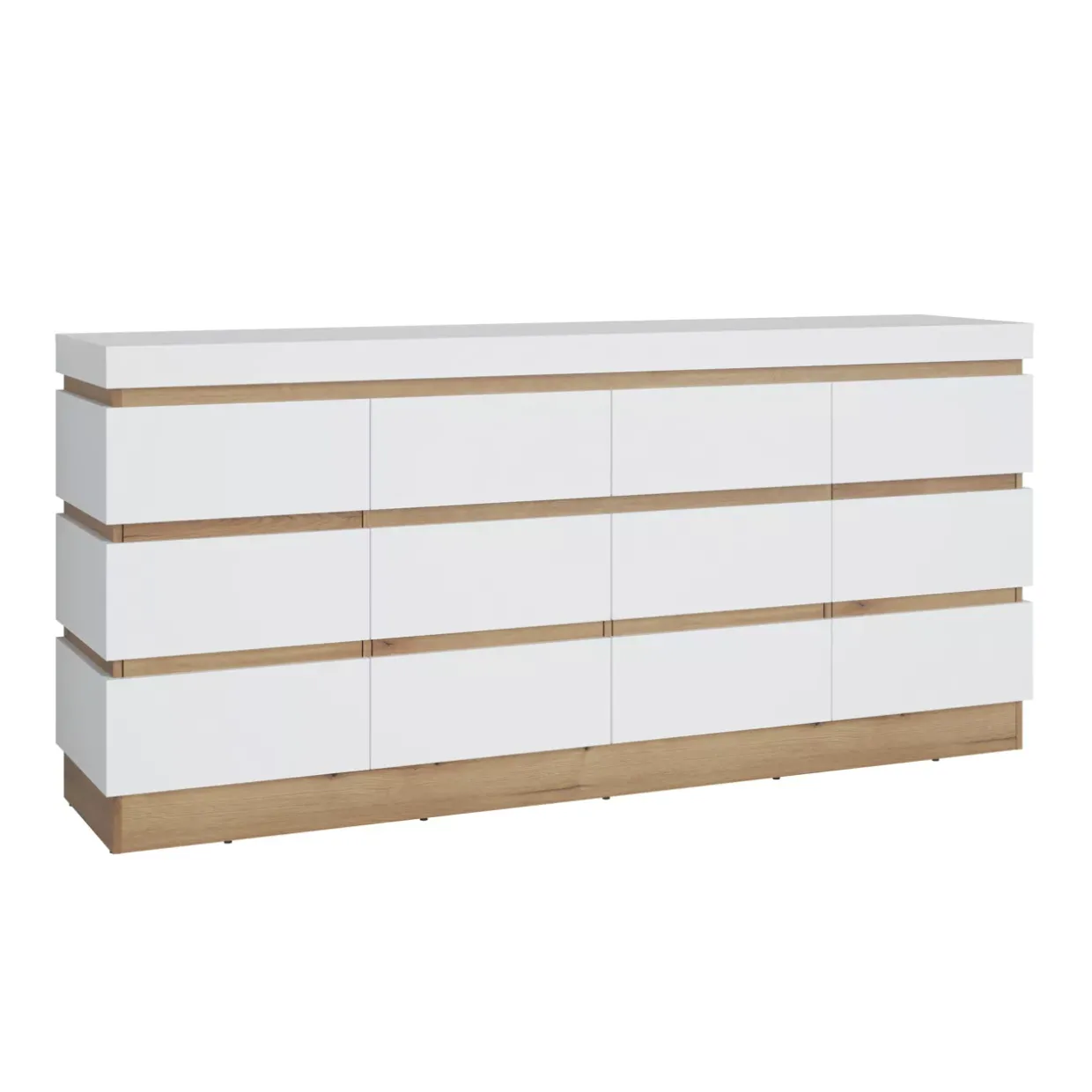 Ein weiteres Highlight ist die sorgfältige Materialauswahl. Holzwerkstoff bietet eine nachhaltige Alternative zu Massivholz und überzeugt mit einer pflegeleichten Oberfläche, die im Alltag besonders praktisch ist. Ob im Wohn- oder Schlafzimmer, die Calabria Kommode fügt sich durch ihr dezentes Design nahtlos in verschiedene Einrichtungsstile ein und bietet gleichzeitig großzügigen Stauraum.