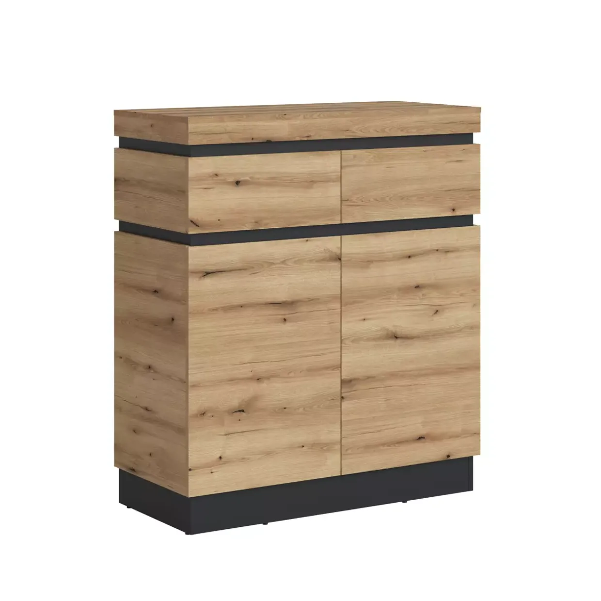 Kosmos Grau verleiht der modernen Kommode Corte eine elegante Note. Diese stilvolle Kommode beeindruckt nicht nur durch ihr zeitgemäßes Design, sondern auch durch die praktische Funktionalität. Die Kombination aus Coast Evoke Eiche und Kosmos Grau erschafft eine harmonische Farbpalette, die sich mühelos in jedes moderne Interieur einfügt.
