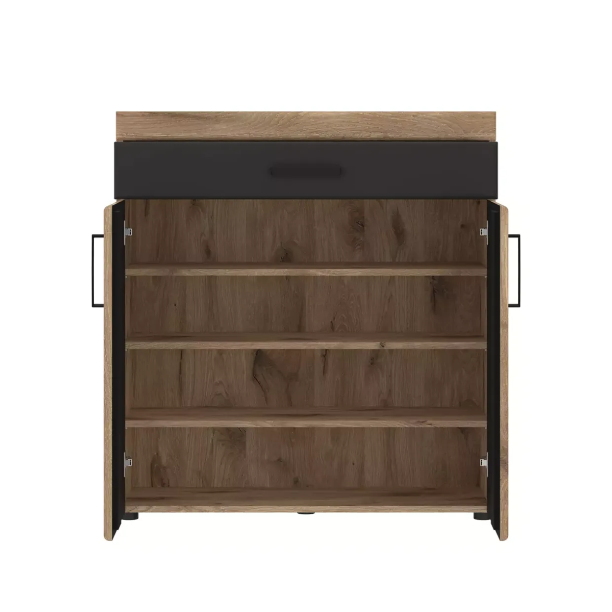 Besonders beeindruckend ist die harmonische Farbkombination von Viking Eiche und Kosmos Grau, die eine zeitlose Ästhetik schafft. Diese Kommode ist nicht nur ein praktisches Möbelstück, sondern auch ein Ausdruck von modernem Stilbewusstsein. Dank der intelligenten Aufteilung mit zwei Türen und einer Schublade bietet sie ausreichend Stauraum für verschiedenste Gegenstände, von Kleidung bis hin zu persönlichen Accessoires.