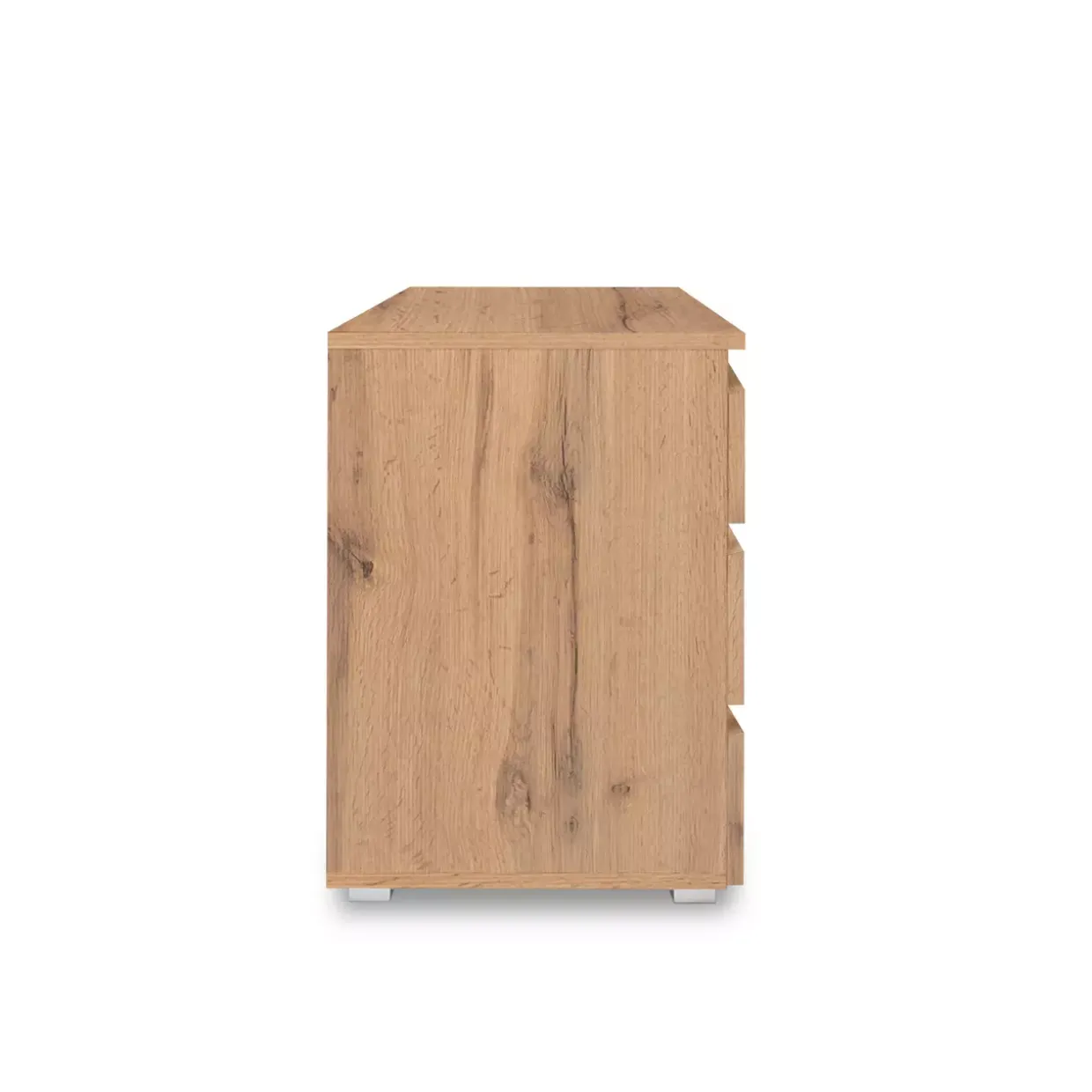 Die Kommode Image verbindet modernes Design mit funktionaler Eleganz. Mit einer stilvollen Farbkombination aus Honigeiche und alufarbigen Akzenten fügt sie sich nahtlos in zeitgemäße Wohnräume ein. Drei geräumige Fächer bieten ausreichend Stauraum für diverse Bedürfnisse und helfen, Ordnung zu schaffen.