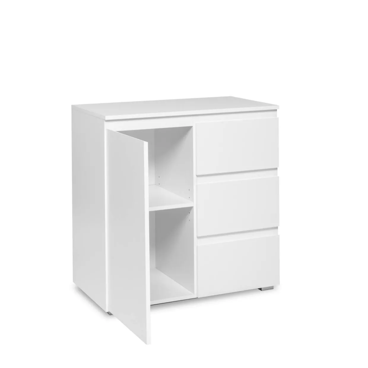 Die moderne Kommode Image besticht durch ihr zeitgemäßes Design und fügt sich nahtlos in jedes stilvolle Zuhause ein. Eine Kombination aus Holzwerkstoff und Kunststoff sorgt für Langlebigkeit und Robustheit, während die Drehtürfunktion eine einfache Handhabung und praktischen Zugriff auf den Innenraum ermöglicht.