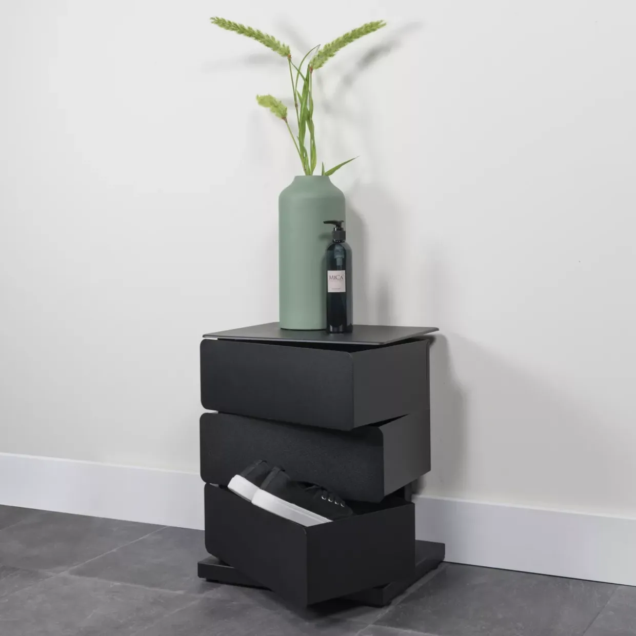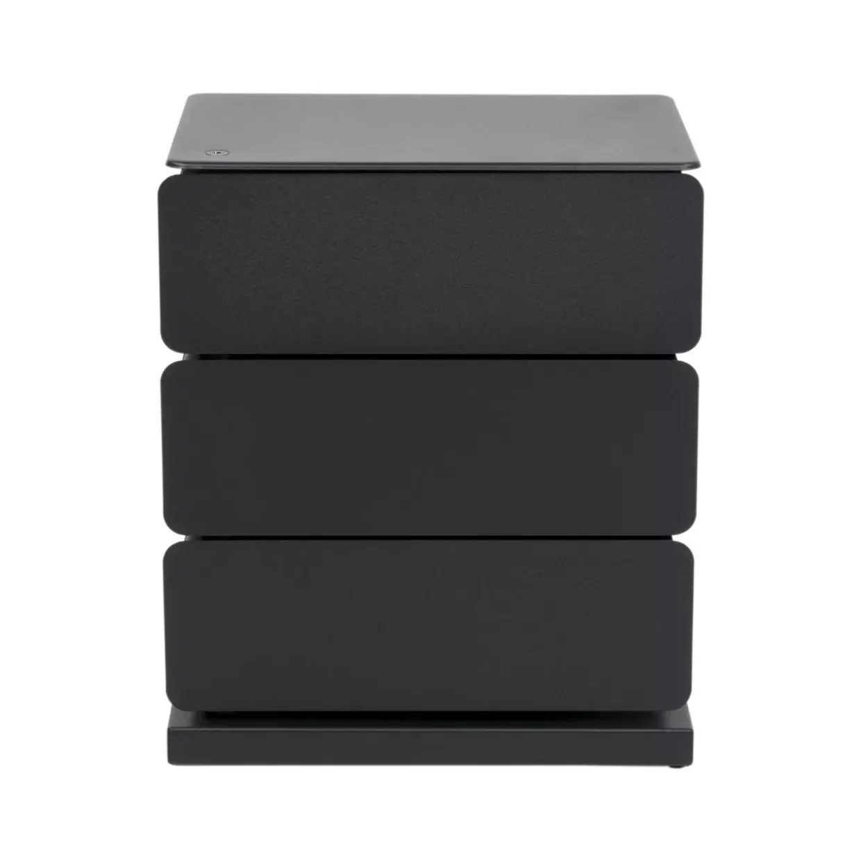 Der geradlinige Stil dieser Kommode spricht alle an, die klare Linien und ein minimalistisches Design schätzen. Drei Schubladen bieten ausreichend Stauraum für diverse Gegenstände, sei es im Wohnzimmer, Schlafzimmer oder Büro. Die Metalloberfläche sorgt zudem für eine pflegeleichte Handhabung, was den Alltag erheblich erleichtert.