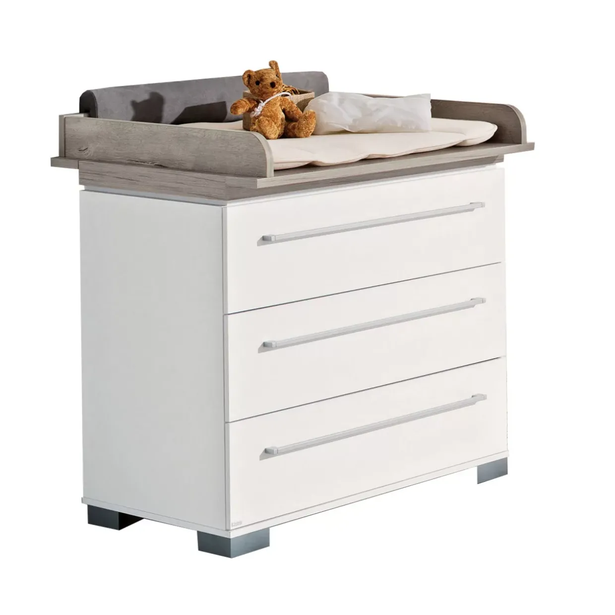Die Kommode Kira besticht durch ihr modernes Design, das sich harmonisch in verschiedene Wohnstile einfügt. Die geschmackvolle Kombination aus Eiche Nautik-Nachbildung und Kreideweiß verleiht dem Möbelstück eine elegante Optik, die gleichzeitig Natürlichkeit und zeitlose Schlichtheit ausstrahlt.