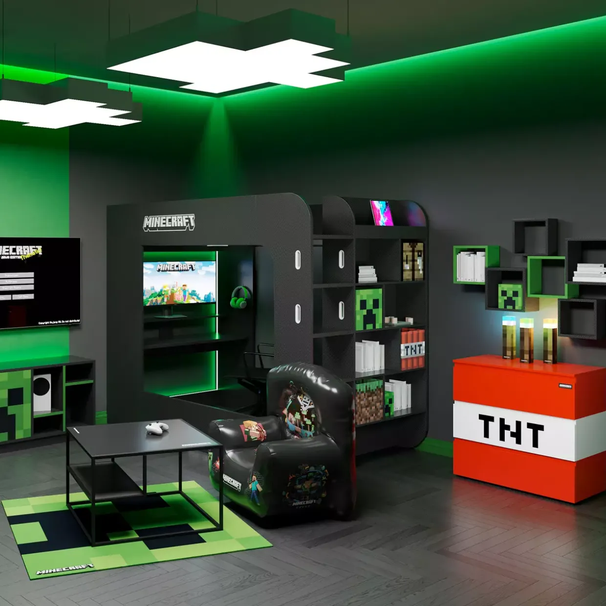 Diese stylische Kommode begeistert mit ihrem originellen TNT-Würfel-Design und wird zum echten Eyecatcher in Ihrem Zuhause. Mit kompakten Maßen von ca. 80×71,1×41,5 cm und 3 geräumigen Schubladen bietet sie viel Platz für Kleidung, Accessoires oder Alltagsgegenstände. Das Besondere: Die integrierte LED-Beleuchtung setzt das dynamische Design effektvoll in Szene und sorgt für eine stimmungsvolle Atmosphäre – perfekt für Gaming-Zimmer, Kinderzimmer oder moderne Wohnbereiche. Die robuste Verarbeitung garantiert Langlebigkeit und Stabilität, während das kreative Design die Fantasie beflügelt. Bringen Sie Funktionalität und Stil zusammen: Mit dieser Kommode im TNT-Würfel-Design schaffen Sie eine originelle und praktische Stauraumlösung, die garantiert alle Blicke auf sich zieht!