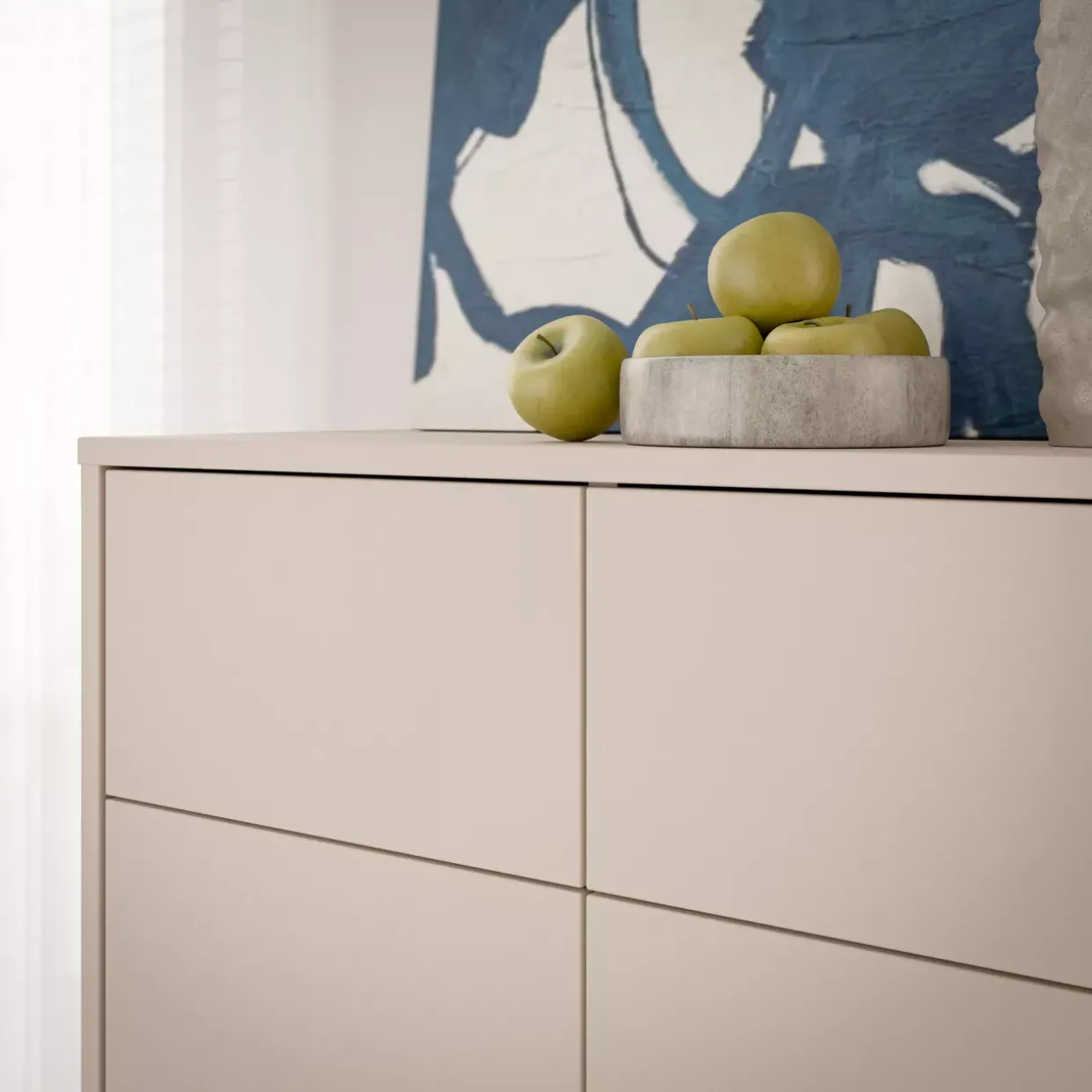 Die Push-To-Open-Funktion verleiht dieser modernen Kommode eine elegante und grifflose Optik, die jeden Raum stilvoll bereichert. Der Trend hin zu minimalistischen Designs wird durch den Einsatz von Holzwerkstoff als Material eindrucksvoll unterstrichen. Diese Entscheidung sorgt für eine harmonische Verbindung von Ästhetik und Funktionalität.Ein besonderes Highlight ist der Vollauszug, der gewährleistet, dass Sie den gesamten Schubladeninhalt mühelos erreichen können. Dies macht die Kommode nicht nur zu einem optischen Hingucker, sondern auch zu einem praktischen Begleiter im Alltag. Die U Sand Nachbildung als Farbwahl strahlt eine warme, einladende Atmosphäre aus, die sich nahtlos in verschiedene Raumkonzepte einfügt.Durchdacht gestaltet, bietet die Kommode ausreichend Stauraum und lässt sich flexibel einsetzen, sei es im Wohnbereich, Schlafzimmer oder Flur. Der moderne Stil sorgt dafür, dass das Möbelstück zeitlos bleibt und mit unterschiedlichen Einrichtungsstilen harmoniert. Die Kombination aus klaren Linien und hochwertigen Materialien macht diese Kommode zu einem langlebigen Möbelstück, das sowohl optisch als auch funktional überzeugt.Lassen Sie sich von der Vielseitigkeit und dem durchdachten Design inspirieren, das in jeder Hinsicht durchdacht erscheint und Ihren Wohnraum auf eine besondere Weise bereichert.