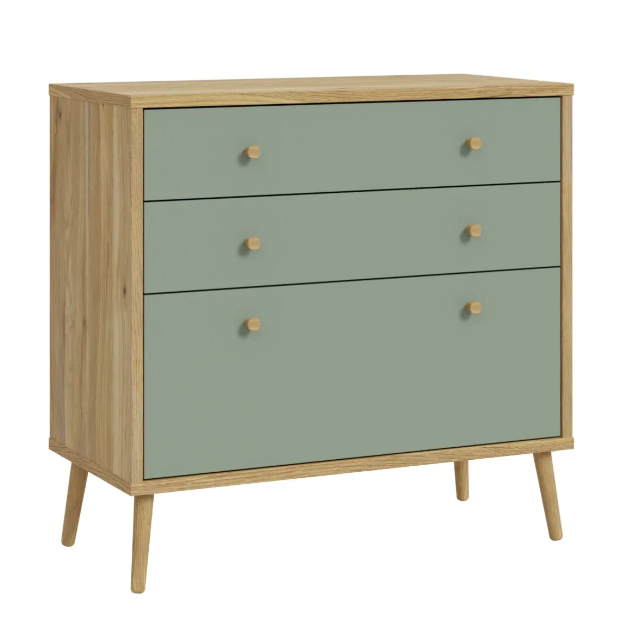 Farbton: Korpus Mauvella Eiche / Füße Eiche natur / Front Salbei grün / Griffe Eiche natur