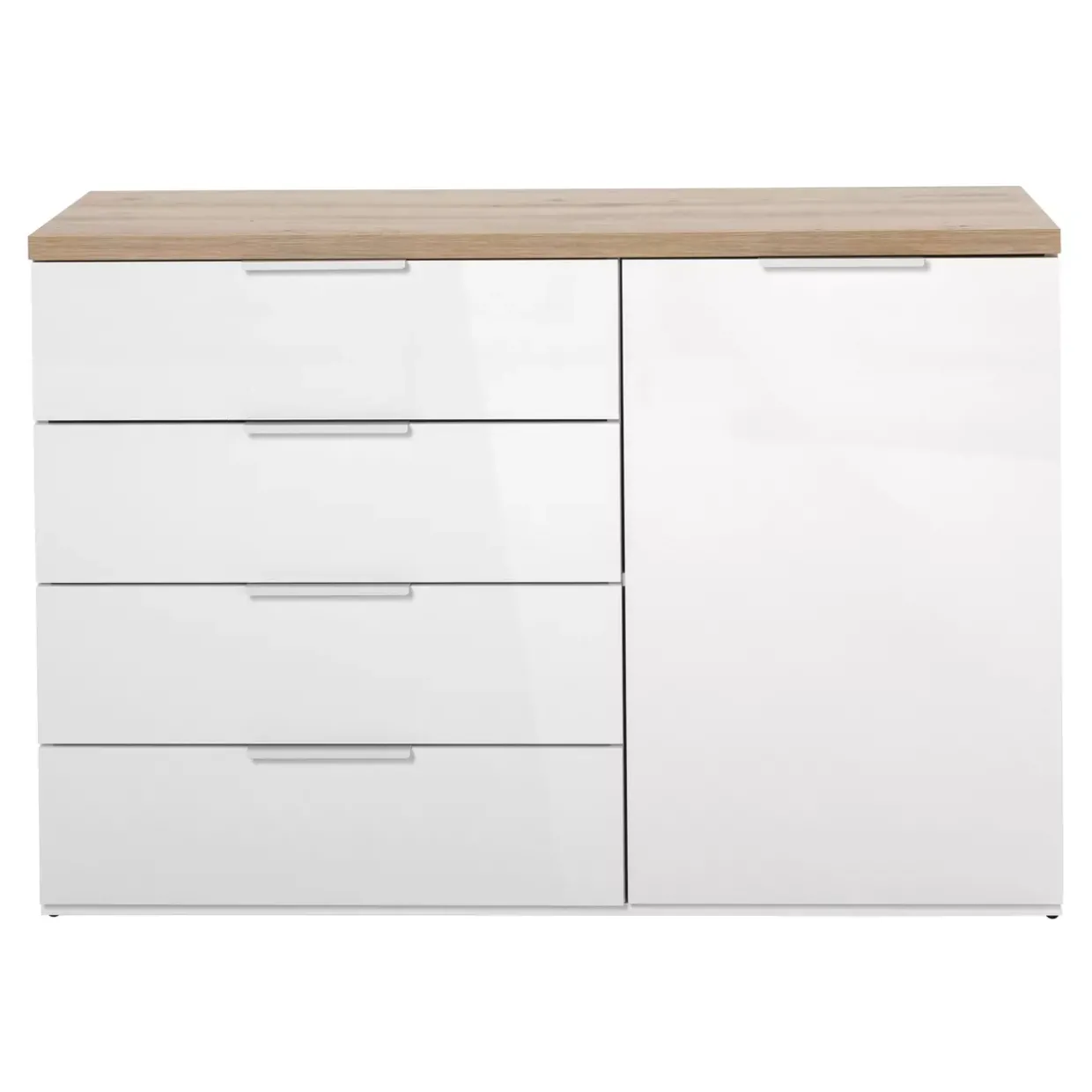 Die Kombination aus Artisan Eiche und weißem Hochglanz verleiht der Mundi Kommode eine moderne und zeitlose Ästhetik. Diese elegante Möbelstück fügt sich nahtlos in jedes zeitgemäße Interieur ein, während es gleichzeitig eine warme, einladende Atmosphäre schafft.
