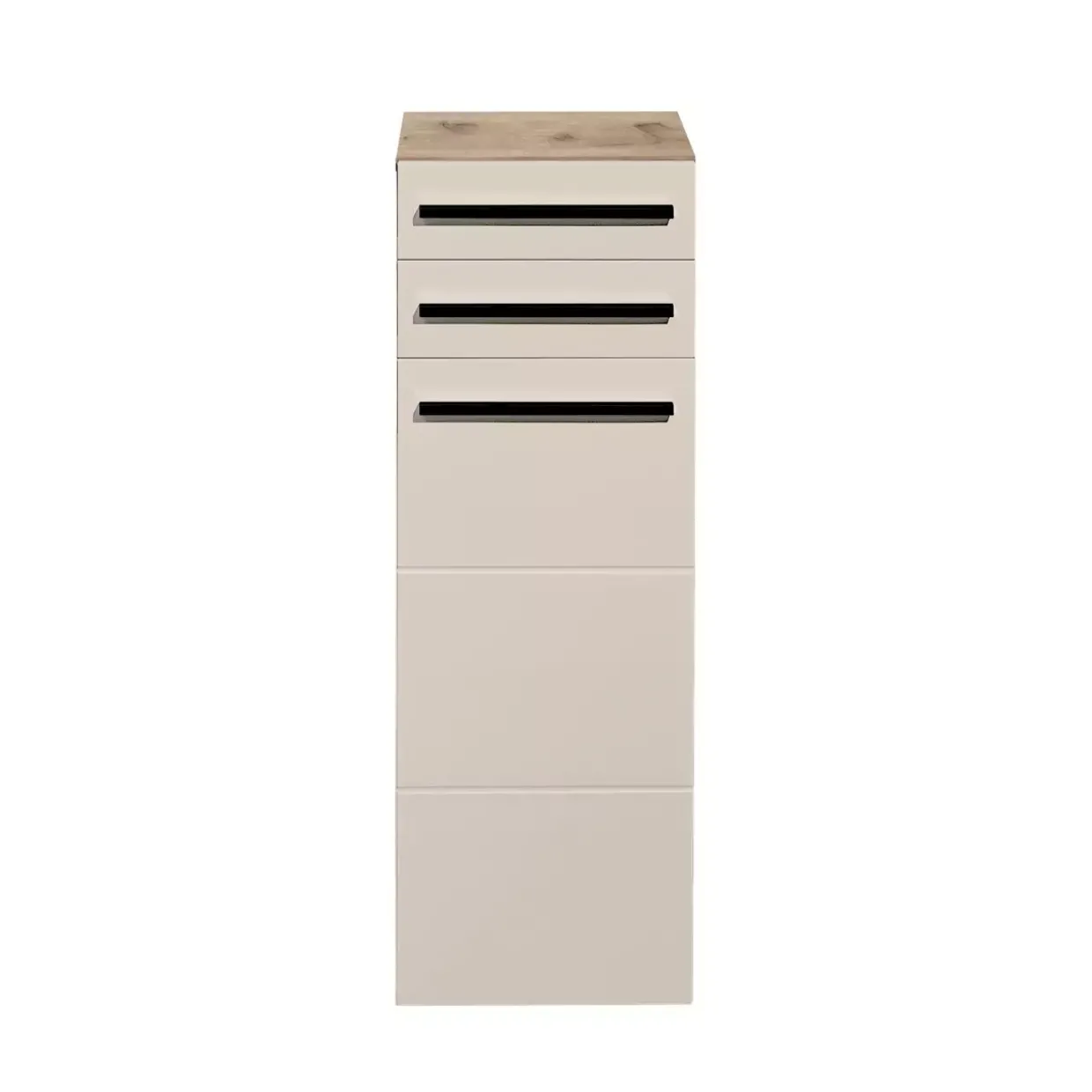 Ein Highlight für jede moderne Wohnumgebung, die Kommode besticht mit einer eleganten Tür und einem praktischen Schubkasten. Der zeitgemäße Stil harmoniert perfekt mit den Farben Viking Oak, Sand und Schwarz, die ein Gefühl von Ruhe und Eleganz vermitteln. Gefertigt aus hochwertigem Holzwerkstoff, bietet die Kommode eine robuste und langlebige Lösung für Ihr Zuhause.
