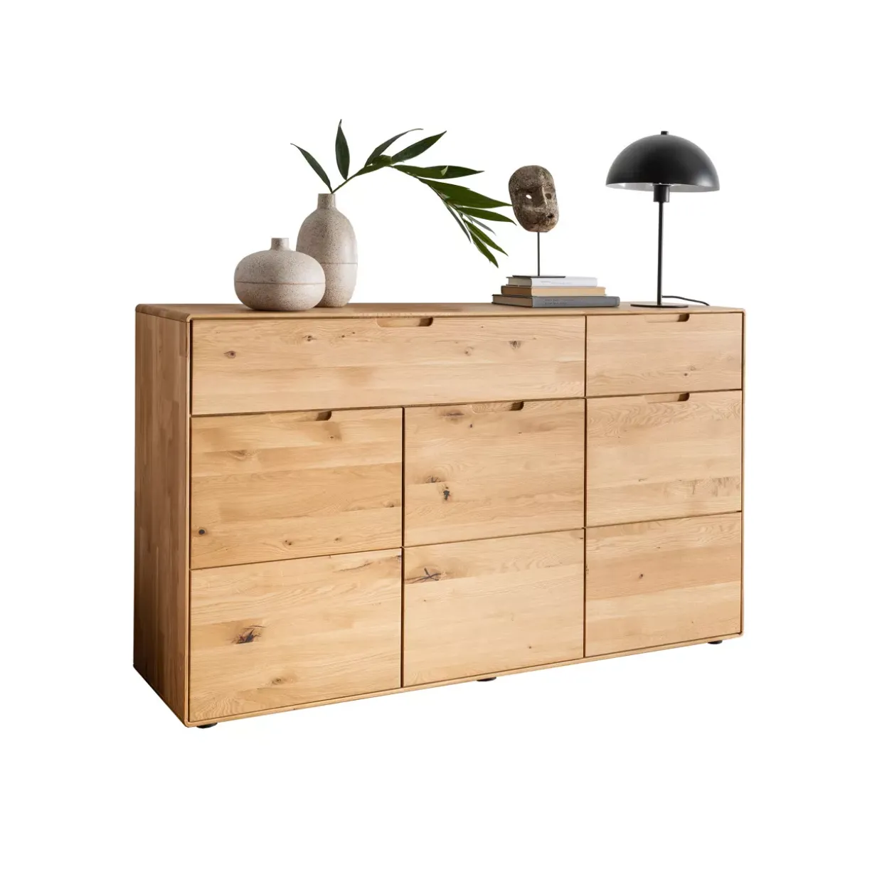 Wildeiche geölt verleiht der Kommode eine zeitlose Eleganz und natürliche Ausstrahlung. Die warme, erdige Farbgebung des Holzes harmoniert perfekt mit einer Vielzahl von Einrichtungsstilen und schafft eine behagliche Atmosphäre in jedem Raum. Holz als Material bringt nicht nur eine edle Optik, sondern auch eine robuste Langlebigkeit mit sich, die über Jahre hinweg Freude bereitet.Ein besonderes Highlight dieser Kommode ist die grifflos gestaltete Front, die für ein minimalistisches und modernes Erscheinungsbild sorgt. Dieses Designmerkmal verleiht dem Möbelstück eine klare Linienführung und lässt es sowohl in traditionellen als auch in modernen Wohnkonzepten erstrahlen. Die Soft-Close-Funktion sorgt zudem für ein geräuschloses und sanftes Schließen der Schubladen, was den Nutzungskomfort erheblich steigert.Die Kommode ist nicht nur ästhetisch ansprechend, sondern auch funktional durchdacht. Sie bietet ausreichend Stauraum und hilft dabei, Ordnung und Struktur in Ihren Wohnbereich zu bringen. Die Kombination aus Naturstil und praktischen Features macht sie zu einem unverzichtbaren Möbelstück in Ihrem Zuhause. Entdecken Sie die Vielseitigkeit und das ansprechende Design, das diese Kommode zu bieten hat.