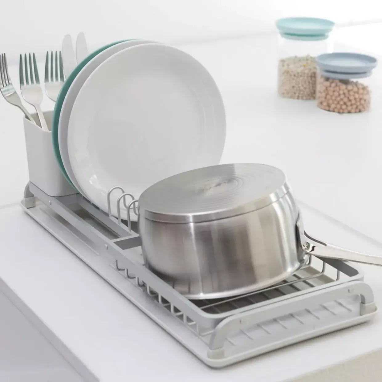 Die Farbe Light Grey verleiht dem Abtropfgestell eine zeitlose Eleganz, die sich nahtlos in jede Kücheneinrichtung einfügt. Funktionalität trifft auf Stil, wenn das Modell Sink-Side in Ihrer Küche Platz nimmt. Aus robustem Kunststoff und hochwertigem Aluminium gefertigt, bietet dieses Küchenaccessoire eine langlebige und zuverlässige Lösung zum Trocknen von Geschirr.
