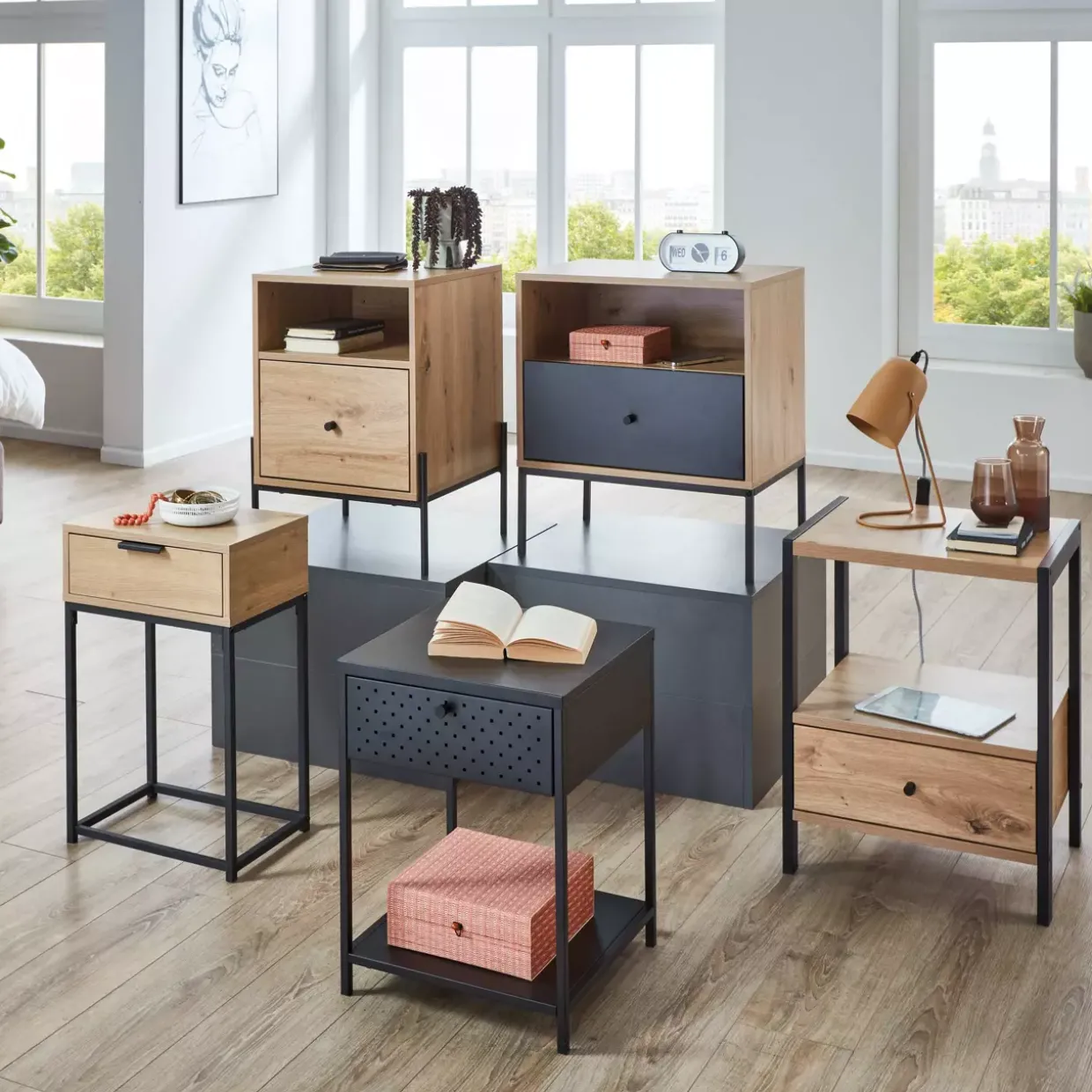 Ein besonderes Highlight ist das integrierte Soft-Close-System, das ein leises und sanftes Schließen der Schublade ermöglicht. So wird der Alltag nicht nur stilvoll, sondern auch geräuscharm gestaltet. Die klare Linienführung und die dezente Farbgebung in Schwarz und Eiche lassen die Konsole sowohl in Eingangsbereichen als auch in Wohn- oder Arbeitszimmern glänzen.