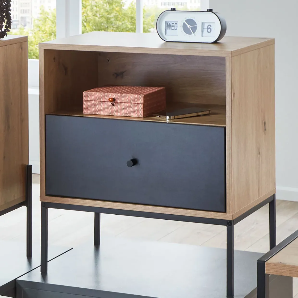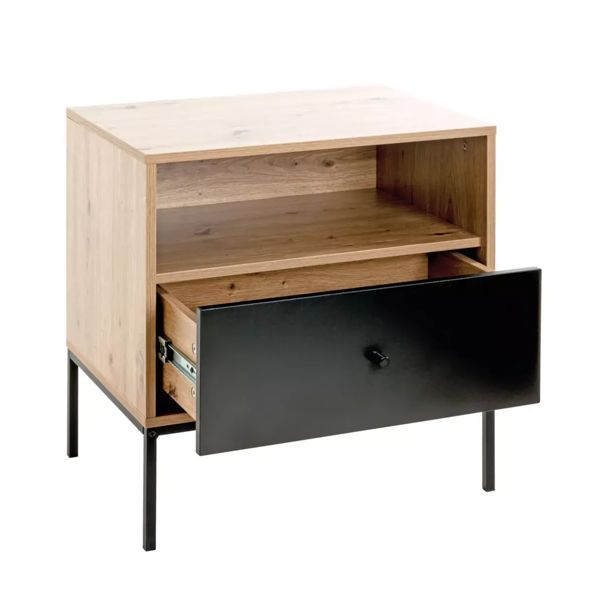 Farbton: Eiche / Korpus Eiche / Gestell schwarz / Füße schwarz / Front Eiche / Front schwarz / Griffe Schwarz