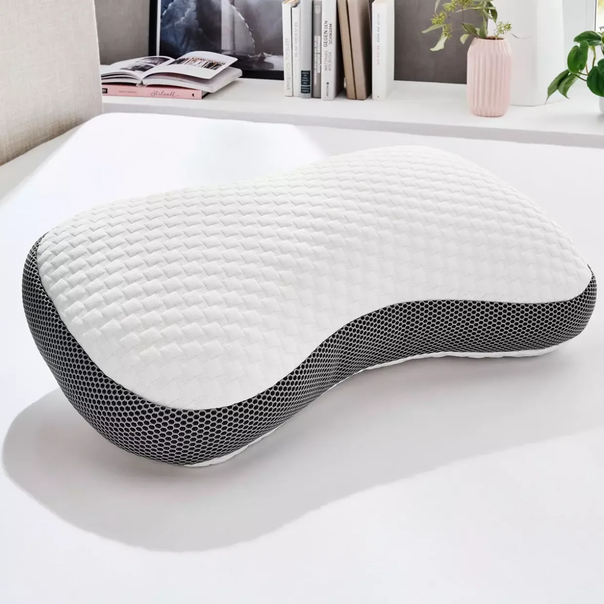 Eckige Formen und modernes Design vereinen sich im Modell Aton, einem Kontur-Schlafkissen, das durch seinen stilvollen Look besticht. Die harmonische Farbkombination aus Weiß und Anthrazit verleiht jedem Schlafzimmer eine elegante Note. Das Kissen ist dank seines strapazierfähigen Textils ganzjährig nutzbar und eignet sich hervorragend für unterschiedliche Schlafgewohnheiten.