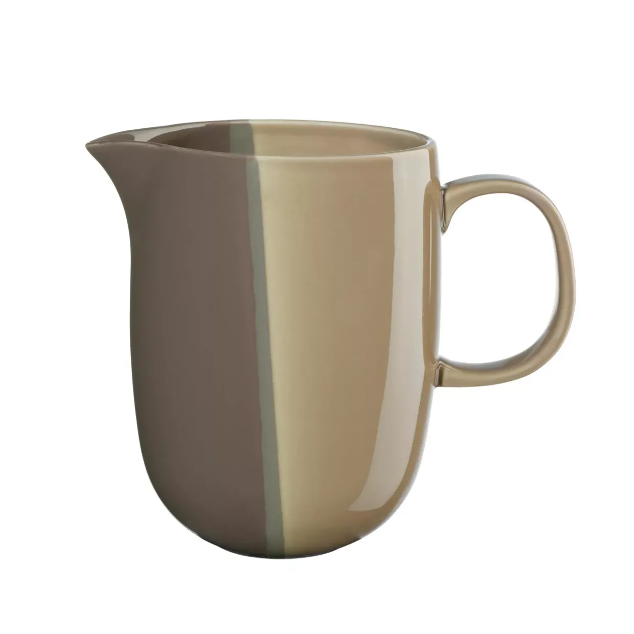 In einem warmen Toffee-Ton präsentiert sich dieser stilvolle Saftkrug aus feinstem Porzellan. Die konventionelle Formgebung harmoniert wunderbar mit der glänzenden Oberfläche, die das Licht auf subtile Weise einfängt und reflektiert. Mit einem Durchmesser von 11 Zentimetern liegt er angenehm in der Hand und bietet eine elegante Möglichkeit, Getränke zu servieren.Keramik, insbesondere Porzellan, wird seit Jahrhunderten geschätzt und setzt auch in modernen Haushalten zeitlose Akzente. Dieser Krug vereint traditionelle Handwerkskunst mit einem Hauch von Eleganz und macht ihn zu einem geschmackvollen Begleiter auf Ihrem Tisch.Ein Fassungsvermögen von 0,8 Litern macht diesen Saftkrug ideal für den täglichen Gebrauch sowie für besondere Anlässe. Ob frisch gepresster Orangensaft am Morgen oder ein erfrischendes Getränk am Nachmittag – dieser Krug bewahrt den Geschmack und die Frische Ihrer Getränke.Der Saftkrug aus Keramik beeindruckt durch seine hochwertige Verarbeitung und das robuste Material, das für Langlebigkeit steht. Er lässt sich mühelos in bestehende Geschirrkollektionen integrieren und verleiht jedem gedeckten Tisch eine stilvolle Note. Genießen Sie die Kombination aus Funktionalität und Ästhetik, die dieser Krug zu bieten hat.