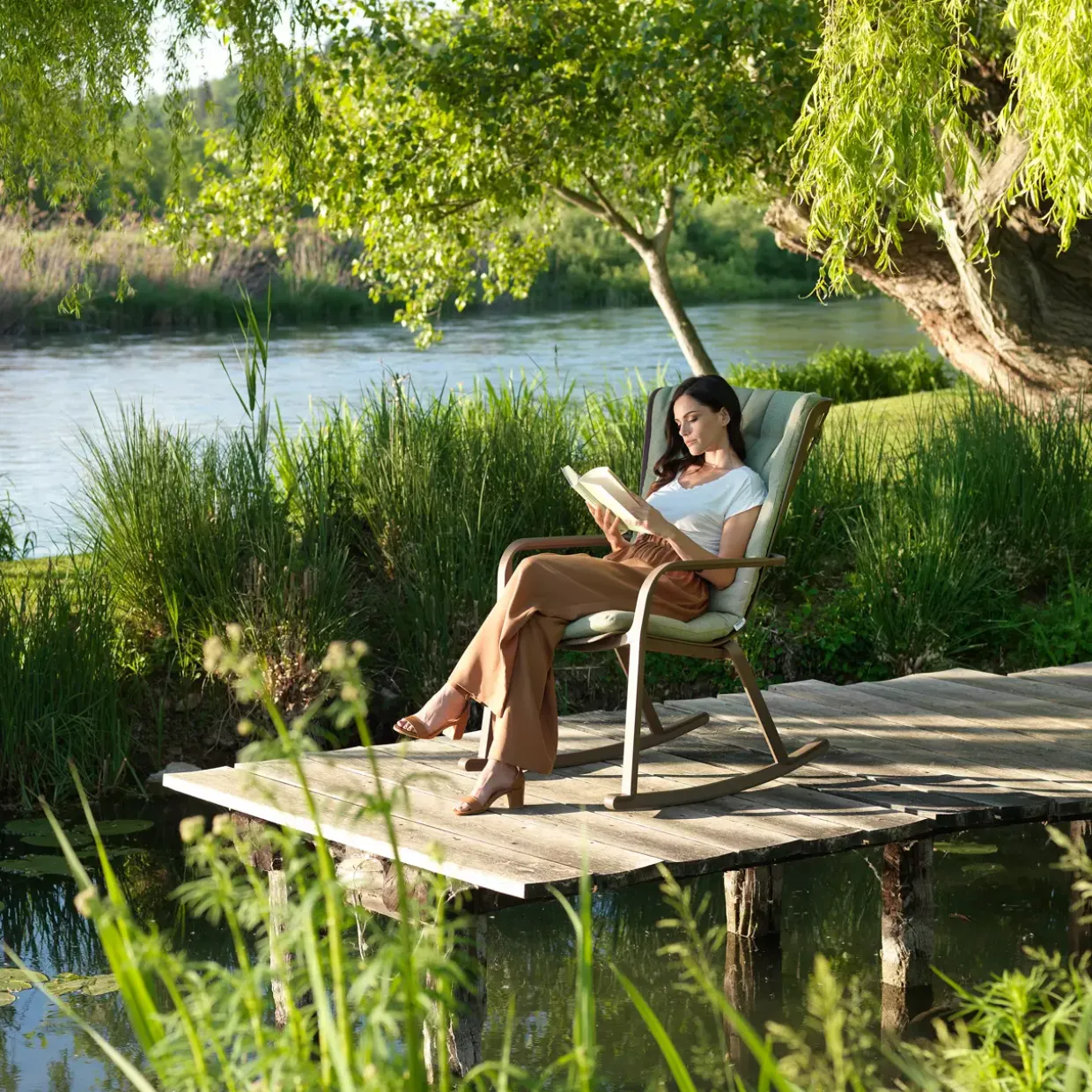 Agave grün verleiht dem modernen Stil des Folio Rocking Modells eine erfrischende Note. Dieses Produkt steht für Eleganz und Funktionalität und fügt sich nahtlos in zeitgenössische Wohnräume ein. Die Kufen-Fußform sorgt nicht nur für ein sanftes Schaukeln, sondern auch für Stabilität und Langlebigkeit.