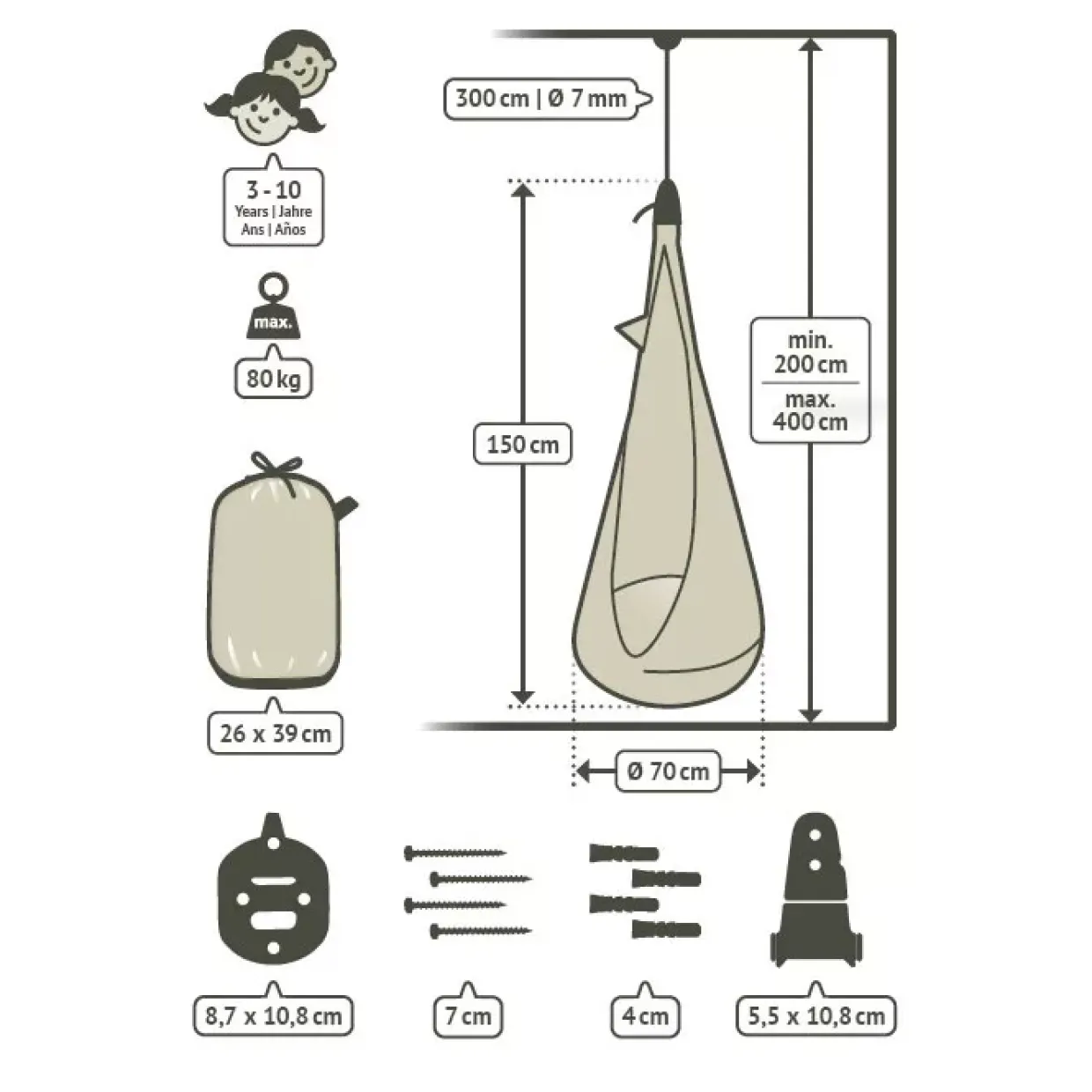 Die Kategorie Kindergruppe macht deutlich, dass die Joki Dolphy Hängehöhle speziell für die Bedürfnisse und das Wohlbefinden von Kindern konzipiert wurde. Mit der im Lieferumfang enthaltenen Befestigung ist die Installation unkompliziert und sicher.