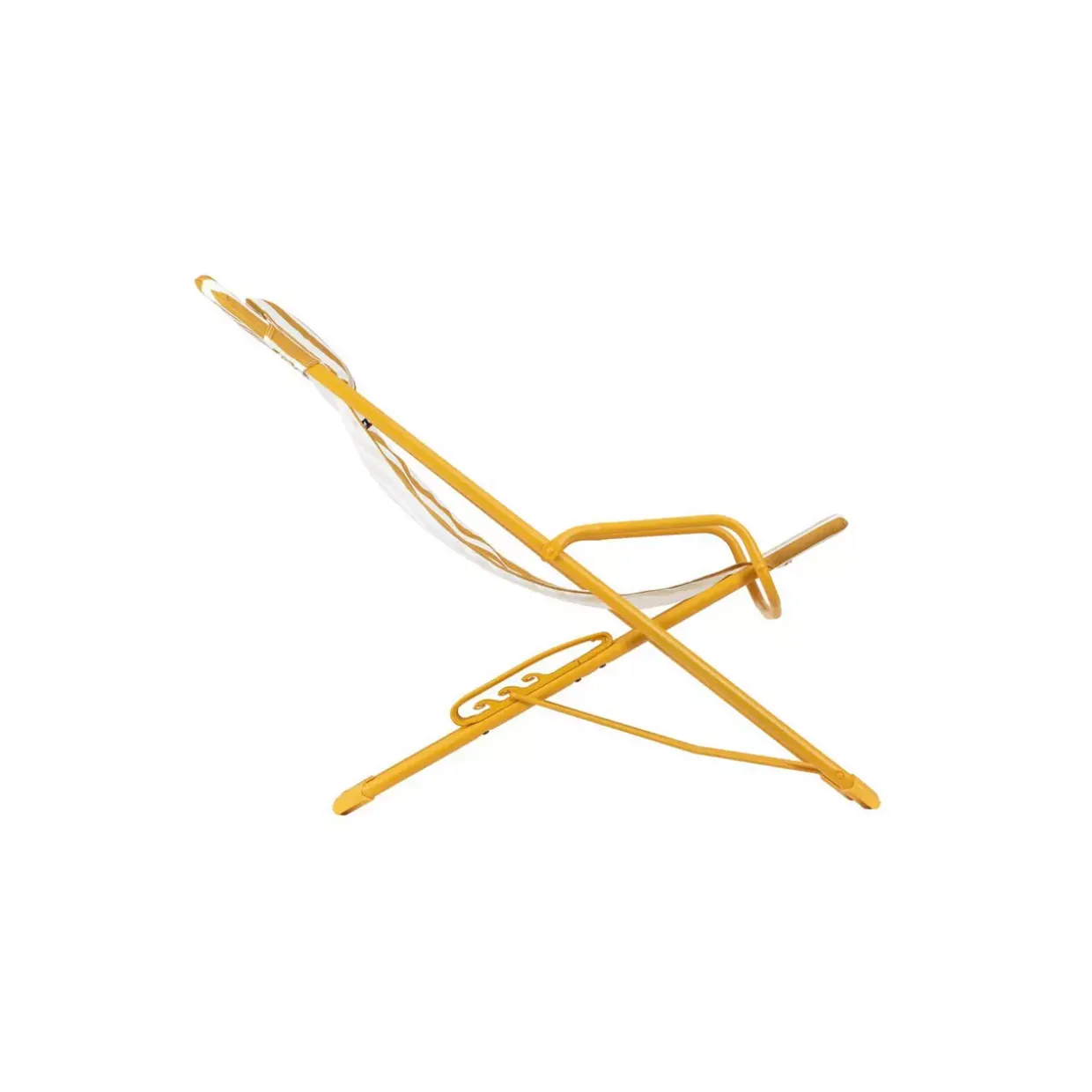 RAYURE MIEL TUBE MIEL – eine Farbgebung, die an sonnige Nachmittage inmitten nostalgischer Gärten erinnert. Diese Gartenliege verkörpert den Retro-Stil in seiner schönsten Form und lädt dazu ein, Momente der Entspannung im Freien zu genießen. Runde Rohre prägen die Fußform und sorgen für ein harmonisches Design, das sowohl Ästhetik als auch Stabilität miteinander verbindet.Textil und Metall vereinen sich hier zu einer gelungenen Kombination. Während das Textil für hohen Liegekomfort sorgt, verleiht das Metall der Liege eine robuste Struktur, die den Herausforderungen des Außenbereichs gewachsen ist. Die Materialwahl spricht für eine Langlebigkeit, die den Genuss der Gartenstunden über Jahre hinweg sichert.Die Gartenliege gehört zur Kategorie TRANSASWING+RAY, die für ihre durchdachten und hochwertigen Outdoor-Möbel bekannt ist. Egal, ob im eigenen Garten oder auf der Terrasse – diese Liege wird schnell zum Lieblingsplatz für Ruhe suchende Genießer. Die sorgfältige Verarbeitung und das elegante Design machen sie zu einem stilvollen Highlight in jedem Außenbereich.Wer die Verbindung von Komfort und klassischem Design schätzt, wird in dieser Gartenliege einen treuen Begleiter finden. Hier vereinen sich Form und Funktion zu einem einladenden Rückzugsort unter freiem Himmel.