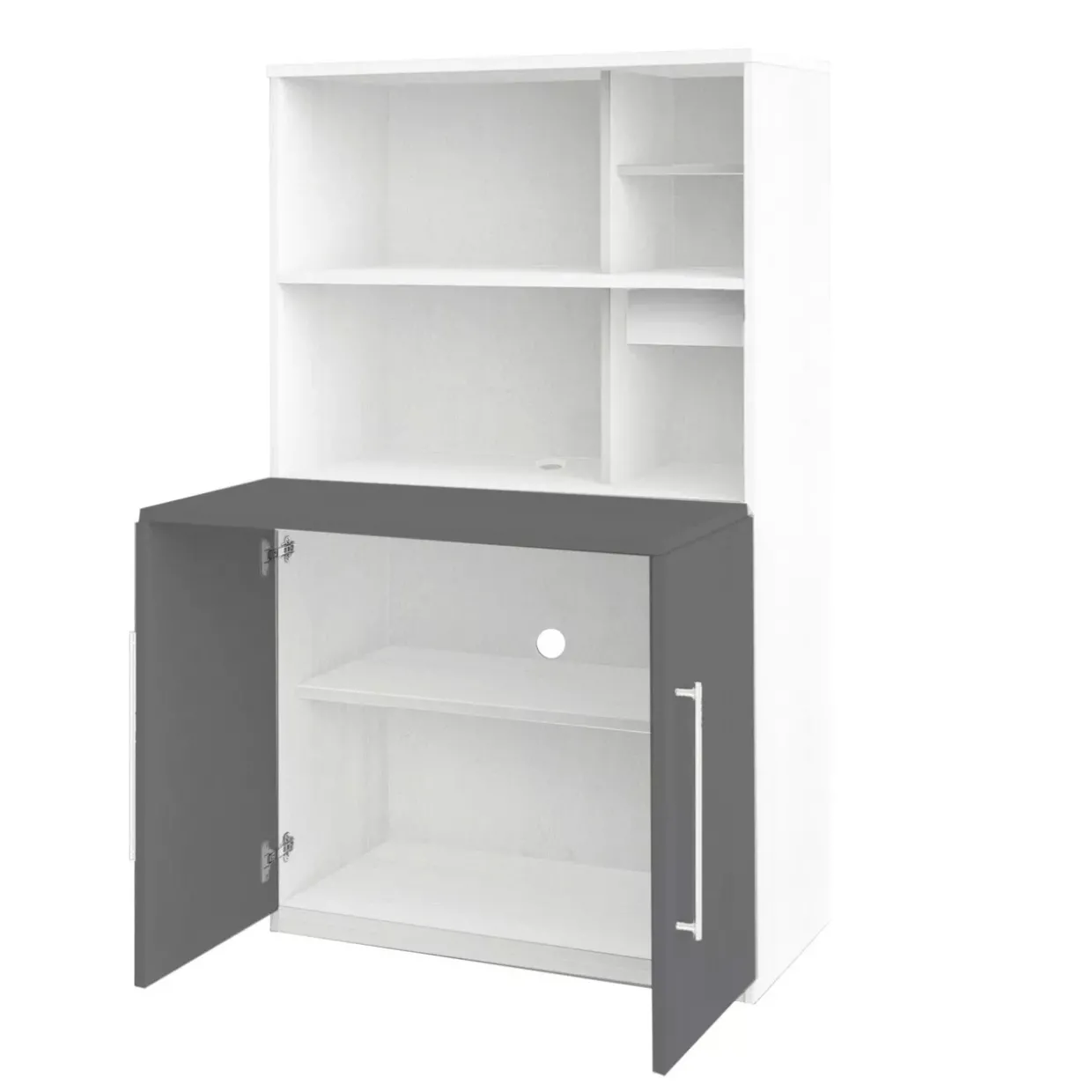 Ein clever integrierter Kabeldurchlass, dessen Bohrung werkseits erfolgt, erleichtert die Organisation Ihrer Technik und sorgt für einen aufgeräumten Arbeitsplatz. Die Techno Laptop-Box ist mit einer praktischen Schreibklappe und zwei Türen ausgestattet, die zusätzlichen Stauraum bieten. Hier lassen sich Dokumente, Schreibutensilien und andere Arbeitsmaterialien sicher verstauen.