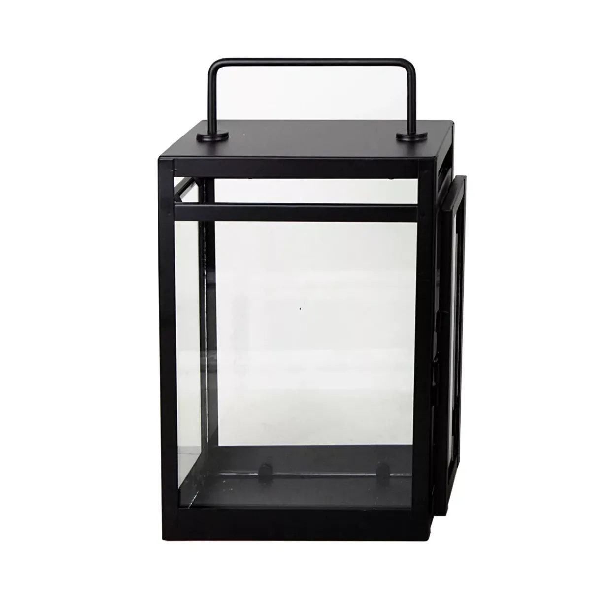 Glas ergänzt das Design durch seine zarte Transparenz, die sanft das Licht durchscheinen lässt und so eine angenehme Atmosphäre schafft. Mit ihrem modernen Stil passt die Laterne sowohl in minimalistisch gestaltete Wohnräume als auch in traditionellere Umgebungen, wo sie als stilvolles Accessoire dient. Die Kombination aus Schwarz und den verwendeten Materialien macht diese Laterne zu einem vielseitigen Dekorationsobjekt, das sich nahtlos in verschiedene Einrichtungsstile einfügen lässt.