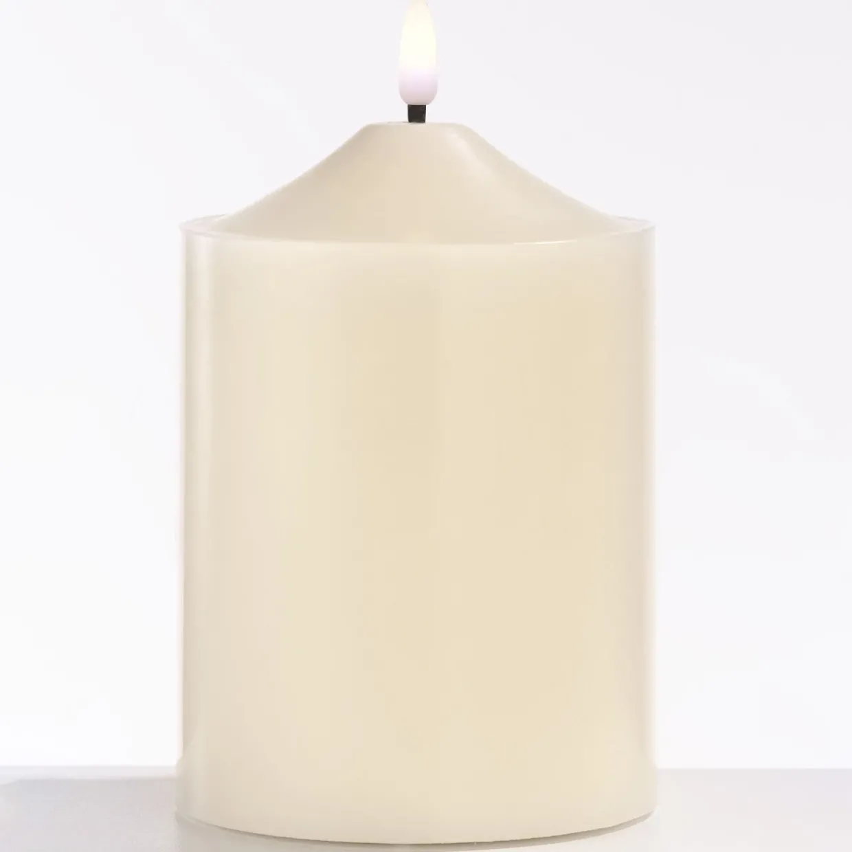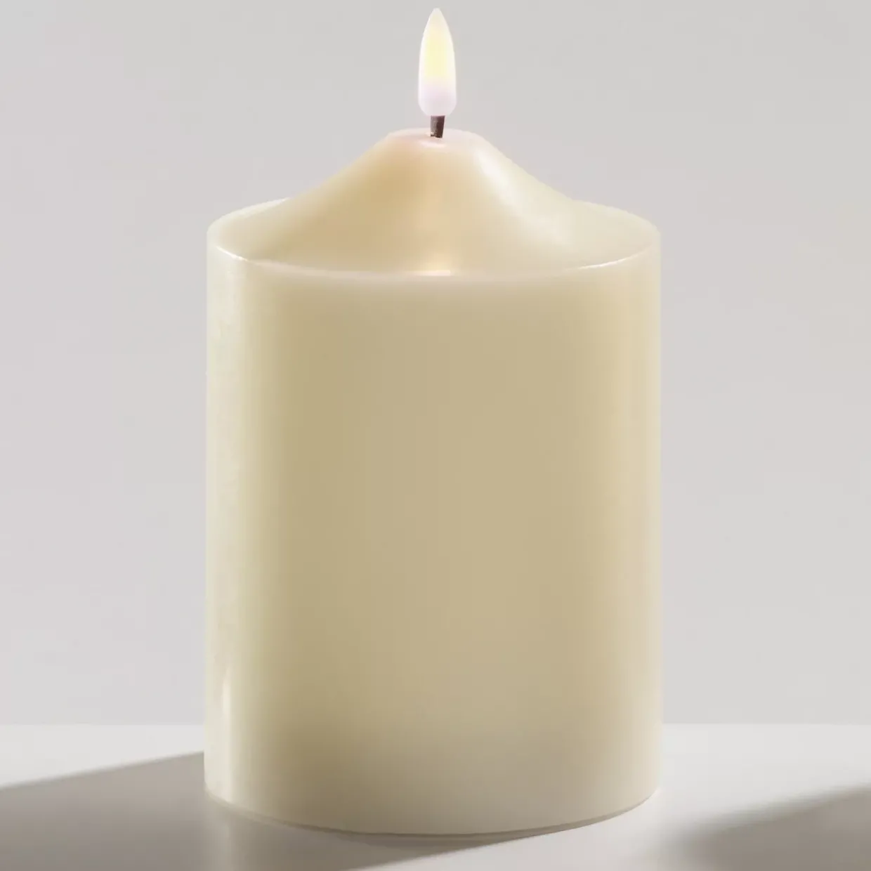 Eine moderne LED-Echtwachskerze in cremefarbenem Design bringt eine edle Atmosphäre in jeden Raum. Gefertigt aus einer Kombination von Kunststoff und Wachs, vermittelt sie das authentische Gefühl einer echten Kerze, ohne die typische Wachstropfenverschmutzung. Die LED-Kerze ist batteriebetrieben und benötigt somit keine externe Stromquelle. Dies ermöglicht eine flexible Platzierung, ohne sich Gedanken über Steckdosen machen zu müssen.