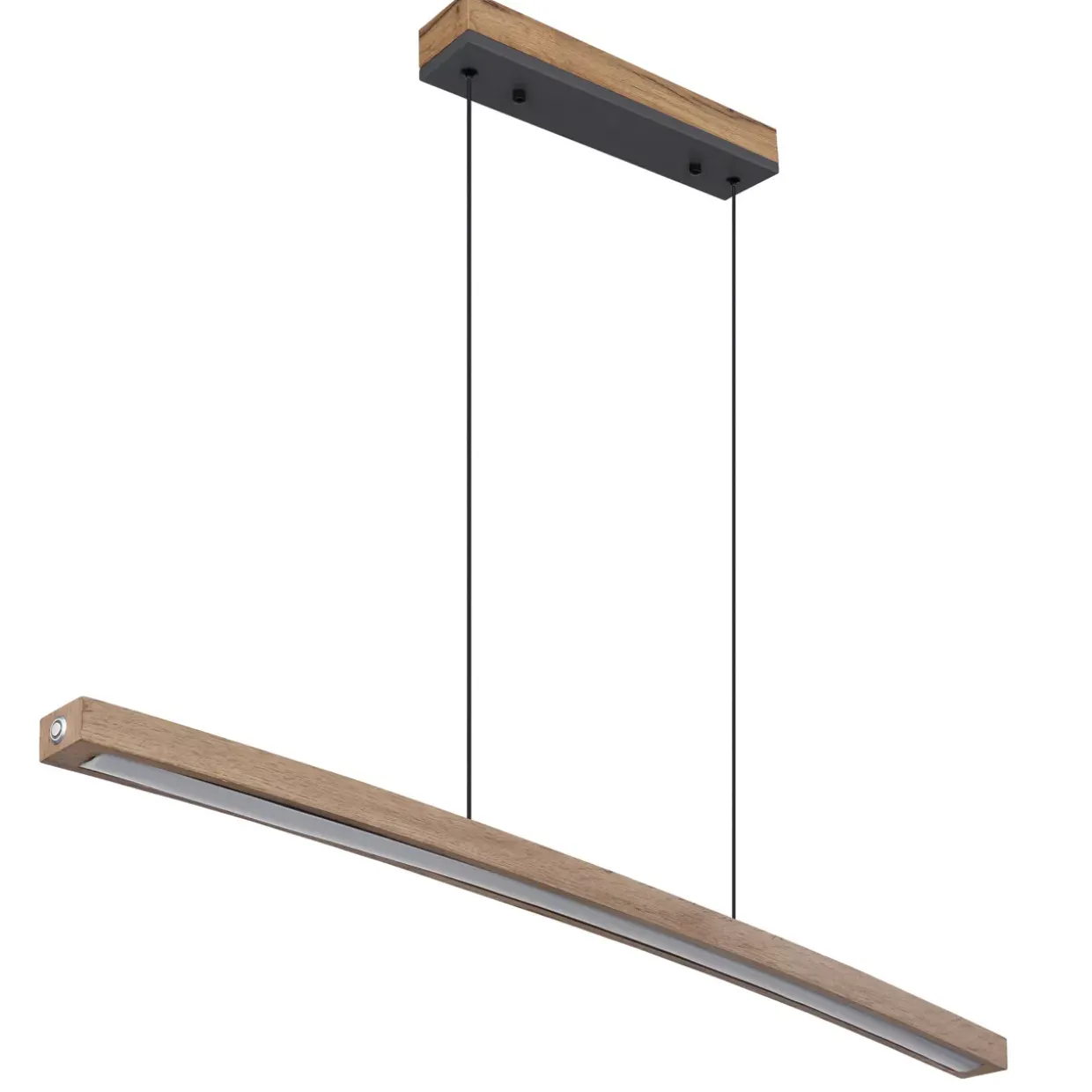 Hängeleuchte Metall Graphit, MDF holzoptik dunkel, Kunststoff opal, Kabel PVC Schwarz, Touch Ein/Aus, Touchdimmer, Memoryfunktion, Höhe kürzbar, Höhenverstellbar, LxBxH: 1000x70x1200mm, inkl. LED 18W 230V, 2050lm Source, 1100lm Output, 3000KDie moderne Hängeleuchte Doro beeindruckt durch ihr stilvolles Design in elegantem Graphit. Perfekt für das ganze Jahr geeignet, vereint diese Pendelleuchte Funktionalität mit ästhetischem Anspruch. Aus einer Kombination von Holzwerkstoff, Kunststoff und Metall gefertigt, fügt sie sich harmonisch in verschiedene Einrichtungsstile ein.Mit einer Helligkeit von bis zu 1100 Lumen sorgt die Doro für ein angenehm warmweißes Licht, das anheimelnde Atmosphäre in jeden Raum bringt. Besonders praktisch ist der integrierte Touchdimmer, der es Ihnen ermöglicht, die Lichtintensität nach Belieben zu regulieren. Dank der Memory-Funktion merkt sich die Leuchte sogar Ihre bevorzugten Einstellungen.Die Doro wird inklusive Leuchtmittel geliefert und arbeitet mit energieeffizienten LEDs, die eine Farbtemperatur von 3000 Kelvin bieten. Die Lichtfarbe bleibt somit stets angenehm und augenschonend. Eine weitere nützliche Eigenschaft ist die Höhenverstellbarkeit, die eine individuelle Anpassung an Ihre Bedürfnisse ermöglicht.Besonders hervorzuheben ist die einfache Pflege: Ein trockenes Tuch genügt, um die Oberfläche der Leuchte zu reinigen. Diese Pendelleuchte ist nicht nur ein optisches Highlight, sondern überzeugt auch durch ihre vielseitigen Funktionen und die hohe Verarbeitungsqualität. Ideal für alle, die Wert auf Stil und Funktion legen.