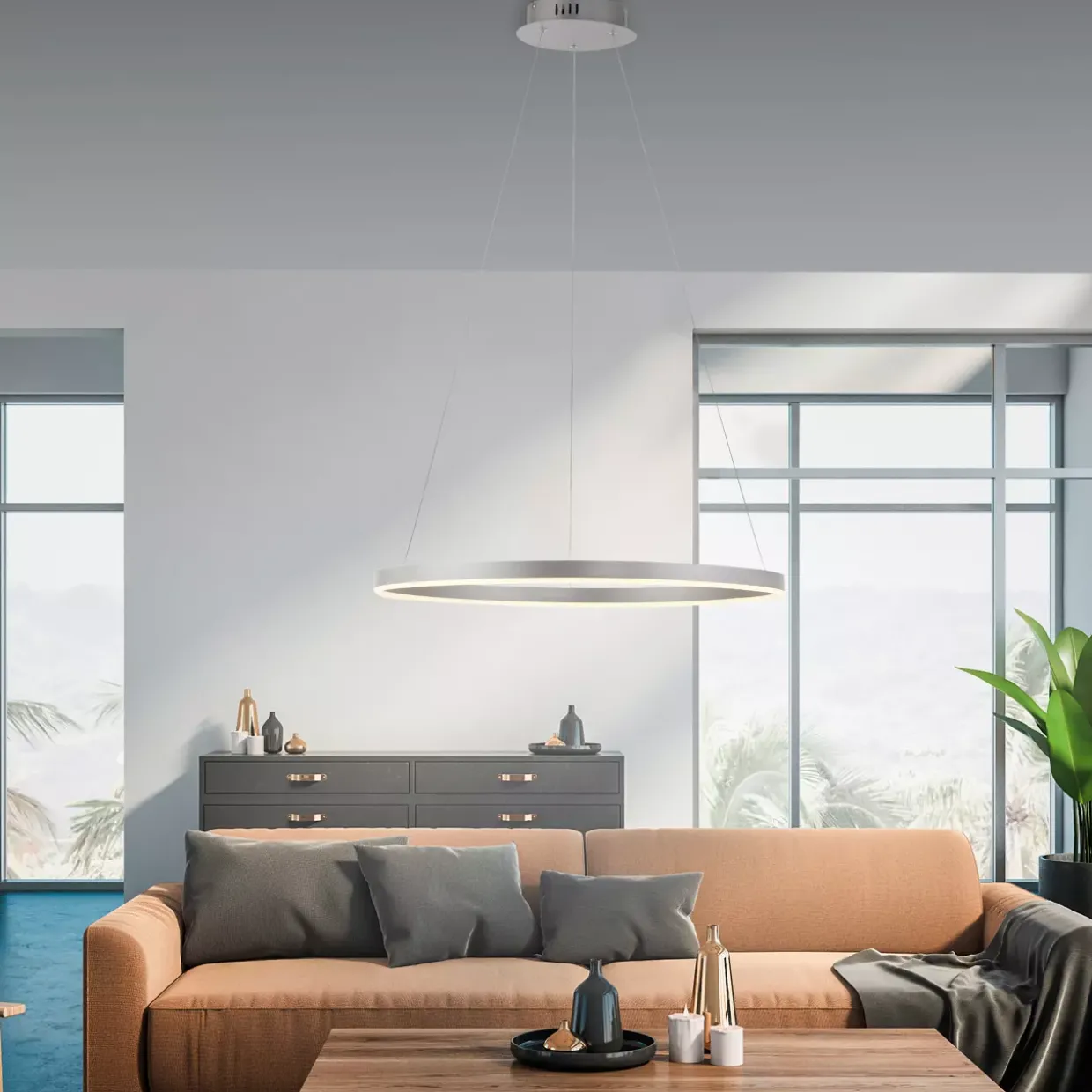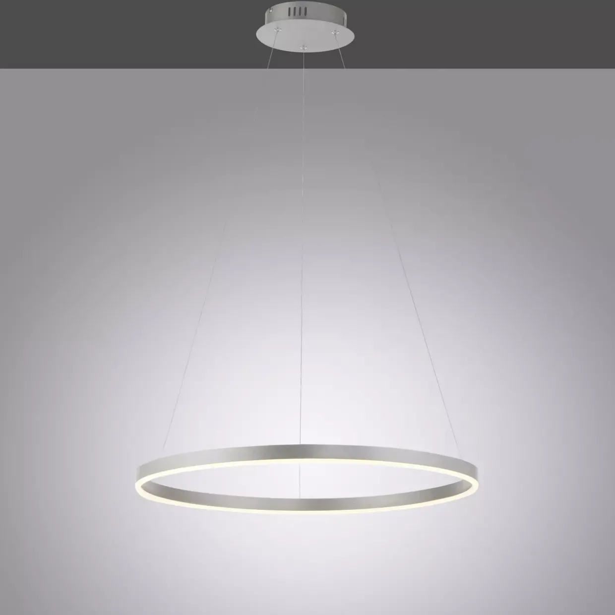 Eleganz trifft auf Funktionalität: Diese Pendelleuchte im modernen Stil ist ein wahres Highlight in jedem Raum. Die edle Aluminium-Oberfläche verleiht der Leuchte einen zeitlosen Charakter und ergänzt stilvoll zeitgemäße Einrichtungsstile. Mit einem beeindruckenden Durchmesser von 58,5 cm zieht sie alle Blicke auf sich und schafft ein harmonisches Ambiente.
