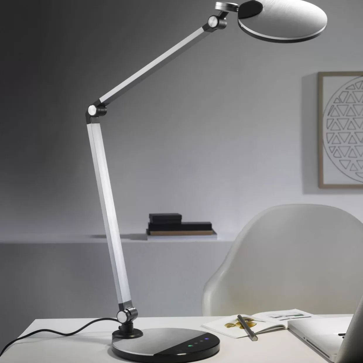 Besonders hervorzuheben ist die stufenlose Dimmbarkeit über den praktischen Touchdimmer. Diese Funktion ermöglicht es Ihnen, die Lichtintensität ganz nach Ihren Bedürfnissen anzupassen, ob für konzentriertes Arbeiten oder eine entspannte Atmosphäre. Ein weiterer Vorteil ist die schwenkbare Konstruktion, die eine flexible Ausrichtung des Lichts garantiert.